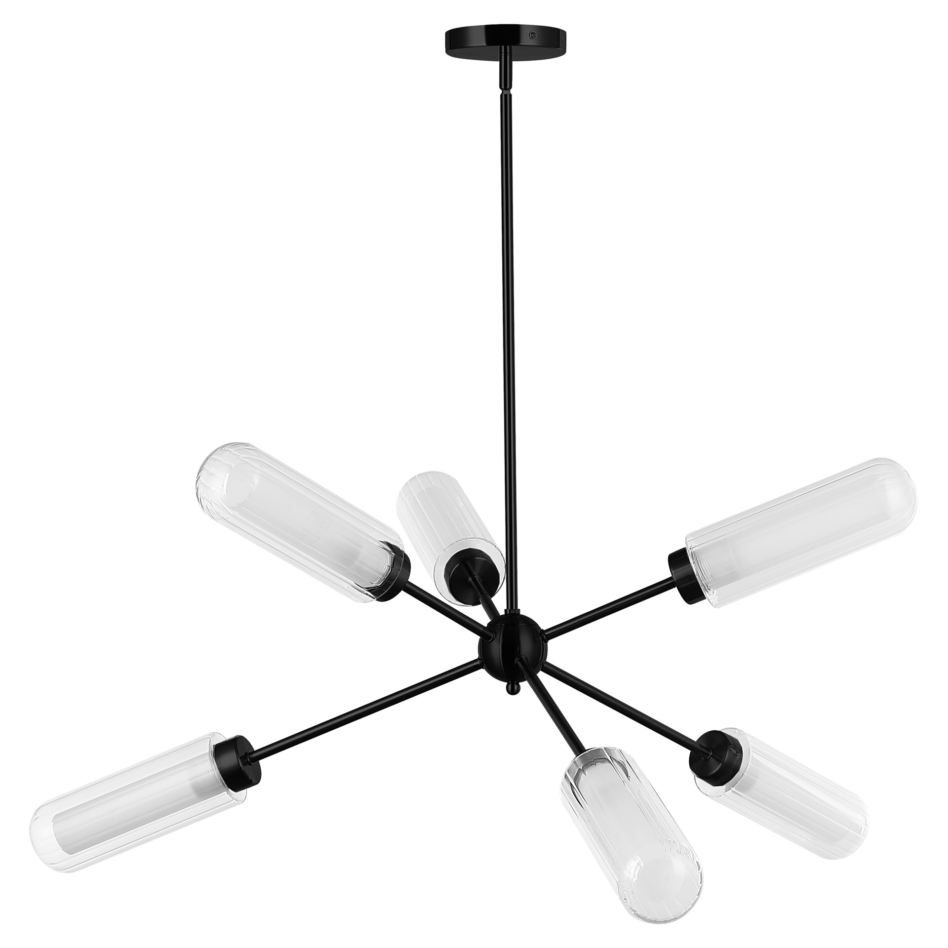 • Lampe suspendue Balbina de style transitionnel en métal noir mat peint, pour plafond, avec 6 ampoules, culot E26, 60 W max