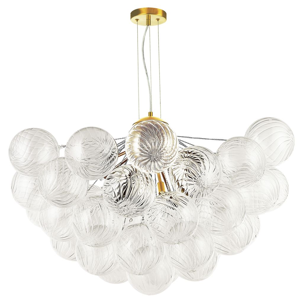 • Lampe suspendue contemporaine Charlize en verre transparent spiralé, pour plafond, avec 12 ampoules, culot G9, 40 W max.