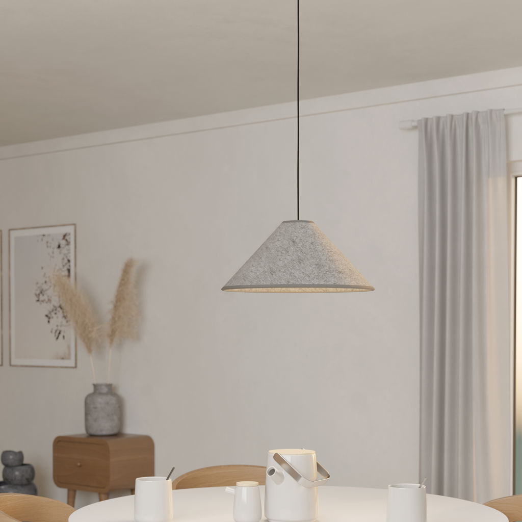La suspension simple Alsager est dotée d'un abat-jour conique en feutre gris.