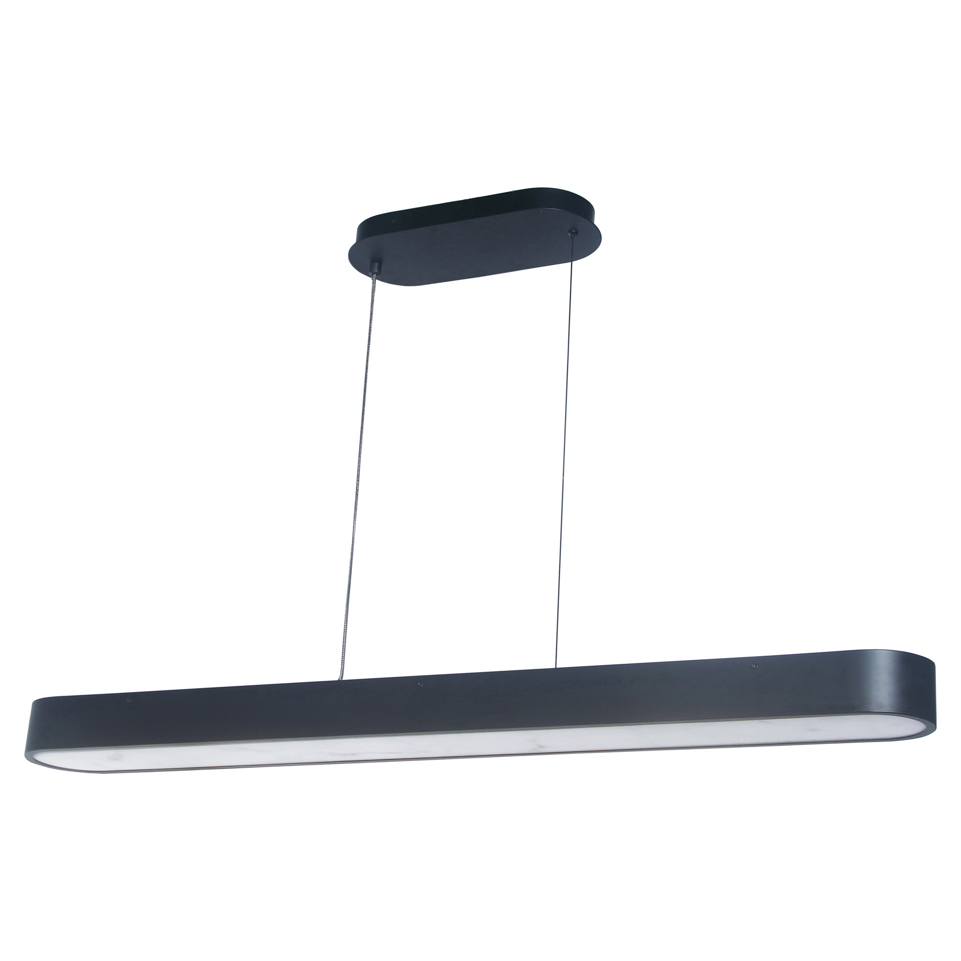 Apportez une touche de modernité et d'élégance à votre décor avec ce luminaire suspendu au fini noir mat et à l'abat-jour en faux albâtre diffusant une lumière douce et chaleureuse.