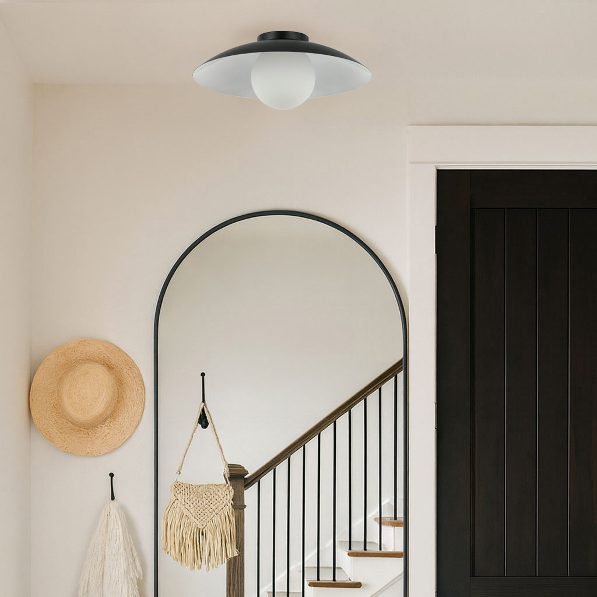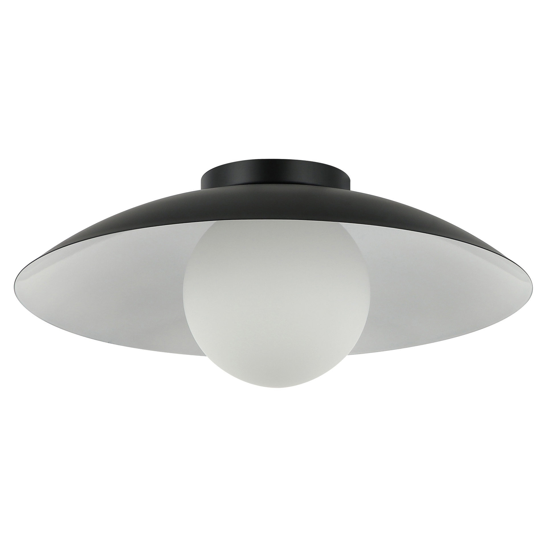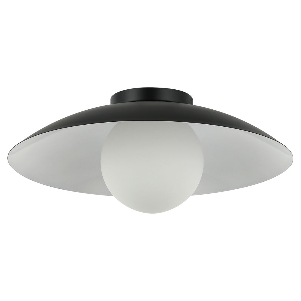 Apportez une touche de style moderne et épuré à votre espace résidentiel ou commercial avec ce plafonnier à 1 lumière au fini noir et blanc mat, surmonté d'un abat-jour en verre opalin.