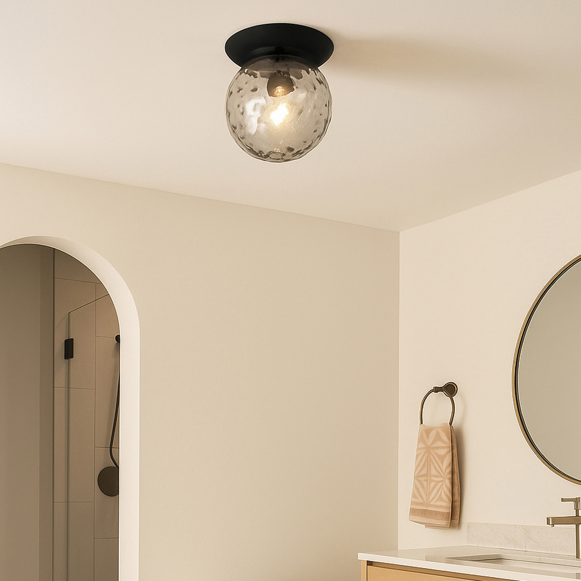 Compatible avec une ampoule E26 (max 60 W, DEL compatible) et classée pour les emplacements humides, elle offre un éclairage chaleureux et polyvalent, même dans les pièces sujettes à l'humidité.