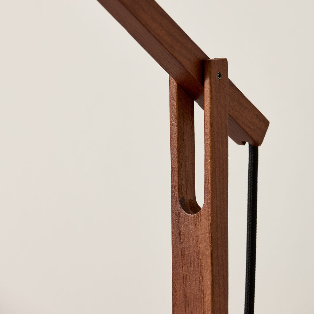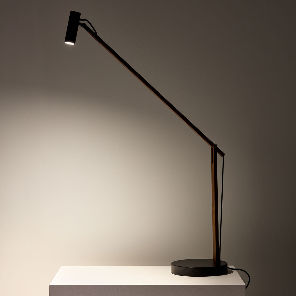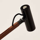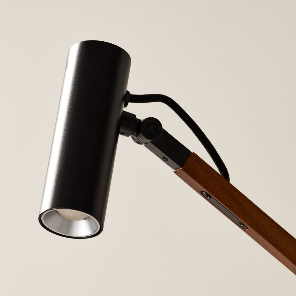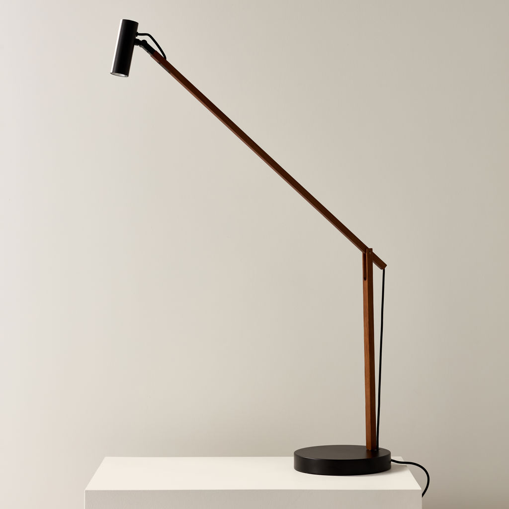 Lampe de bureau flexible, la lampe de bureau Crane LED a un long bras en bois de noyer qui est facile à régler en hauteur et en rotation.