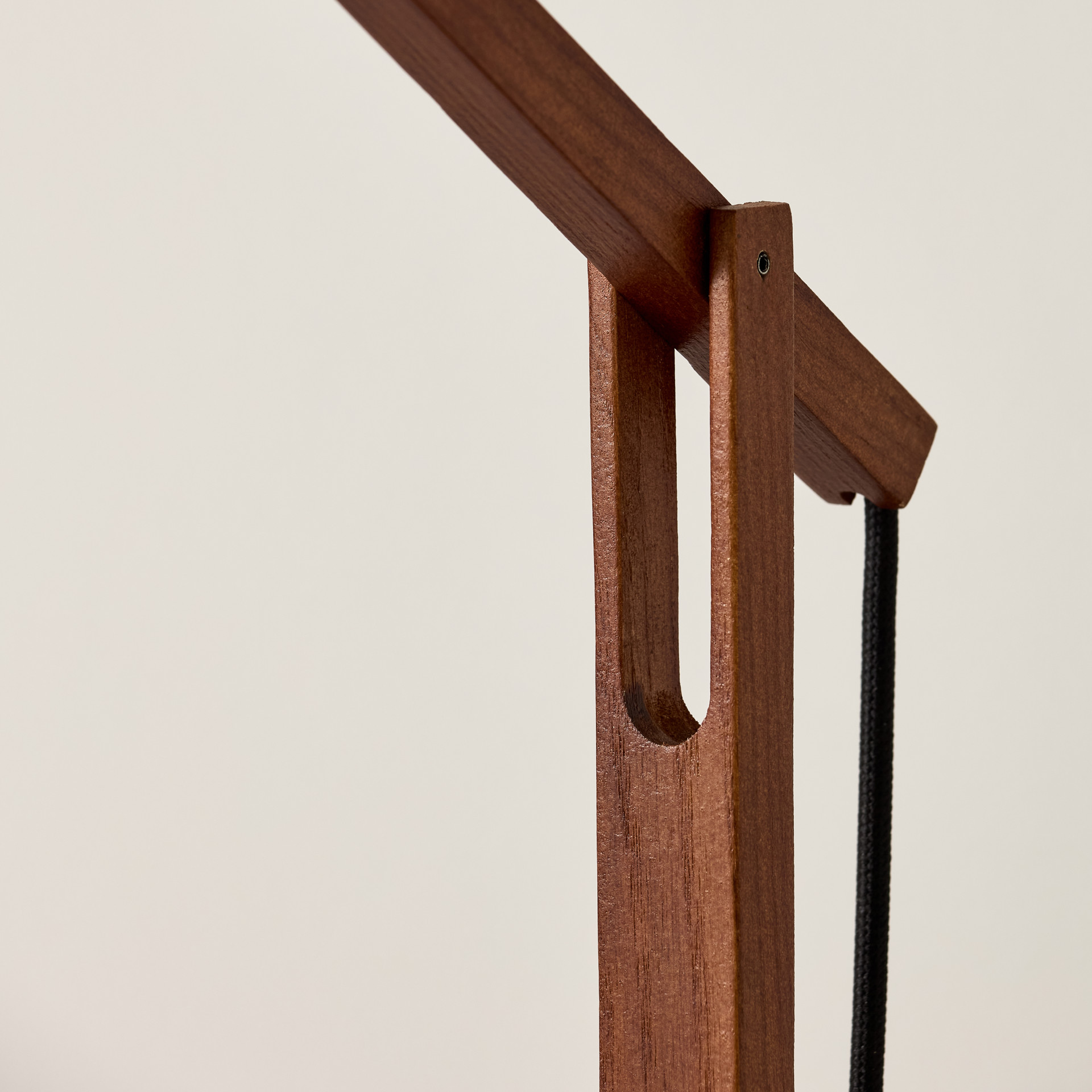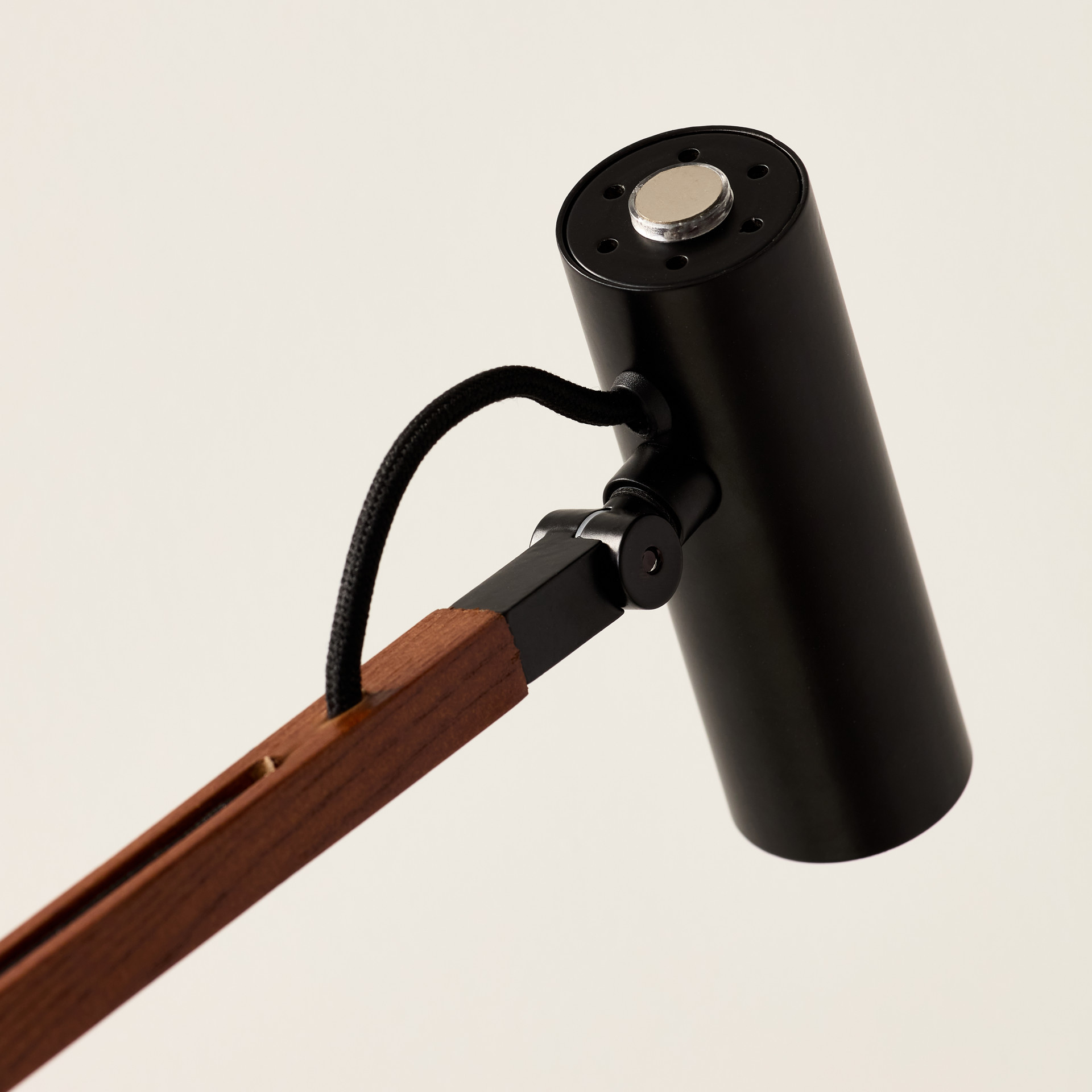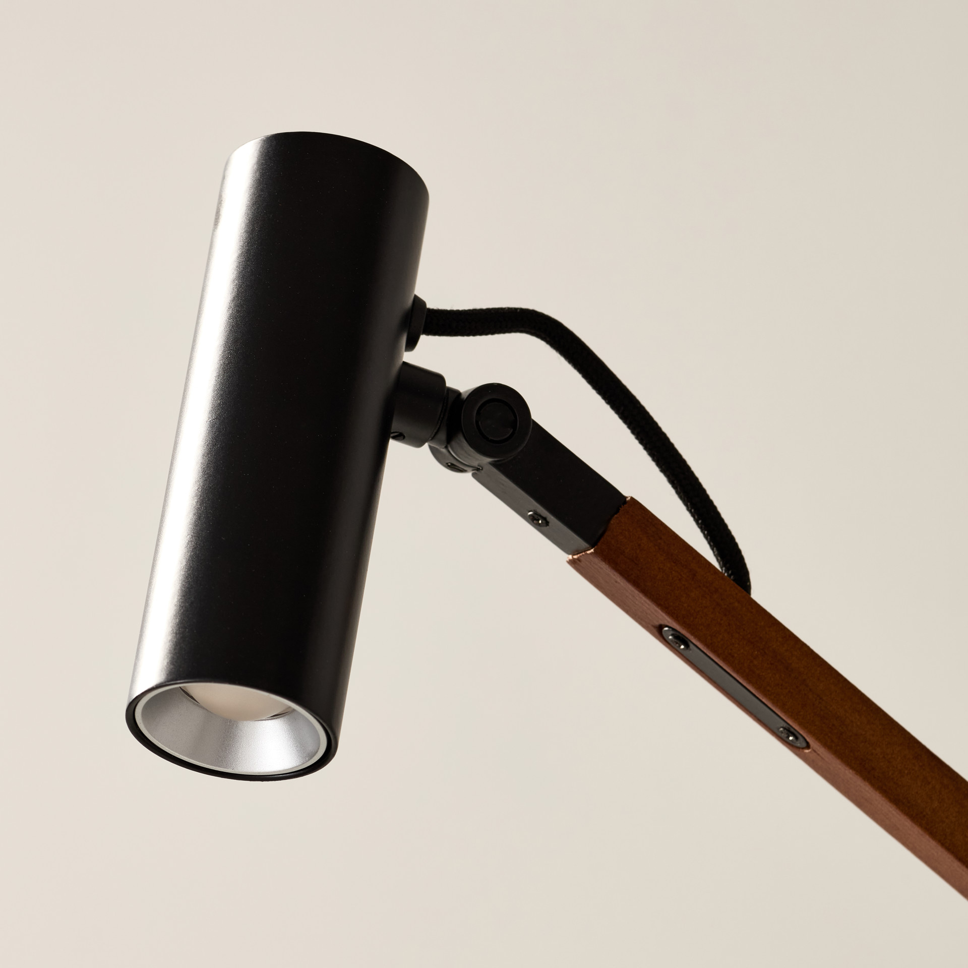 La lampe utilise son cordon recouvert de tissu noir et un ressort spécial caché dans la base pour s'équilibrer à n'importe quel angle que vous choisissez de la poser.