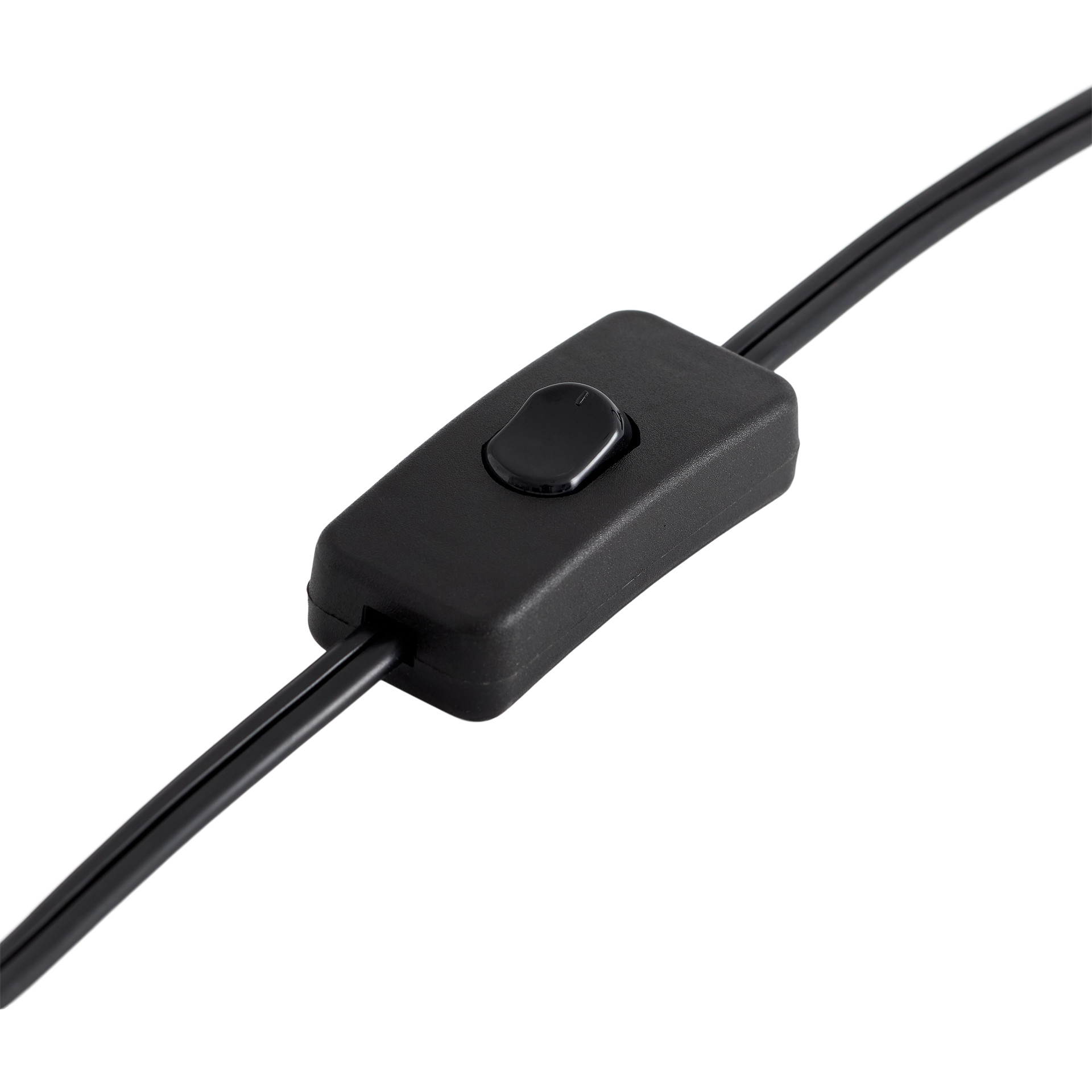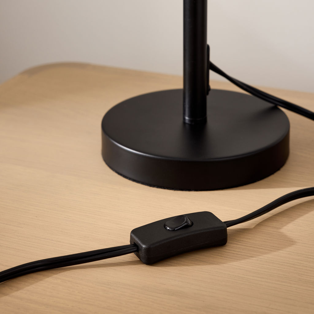 La structure en métal mat contraste élégamment avec la transparence aérienne du verre, tandis que la base circulaire assure une stabilité parfaite. L'interrupteur sur fil permet un contrôle pratique à portée de main.