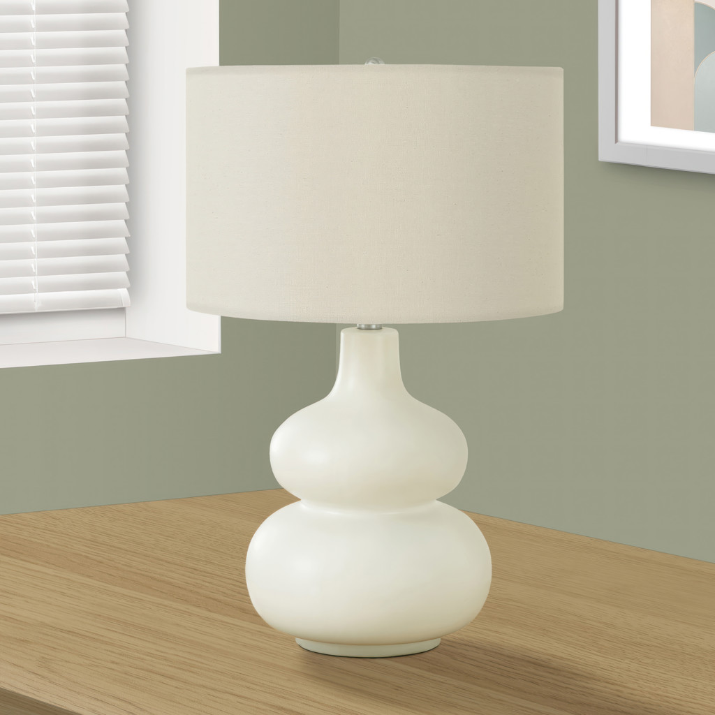 Créez une ambiance à la mode avec cette élégante lampe de table de 25 pouces de haut. Conçue avec une base moderne et incurvée en céramique crème et un abat-jour en tissu lin ivoire, cette lampe illuminera n'importe quel espace en ajoutant un accent décoratif à votre bureau, votre salon ou votre chambre à coucher.