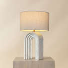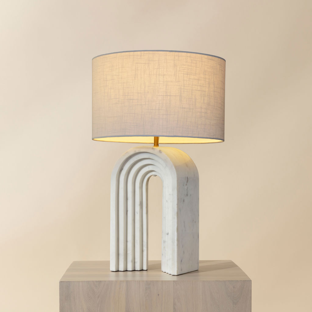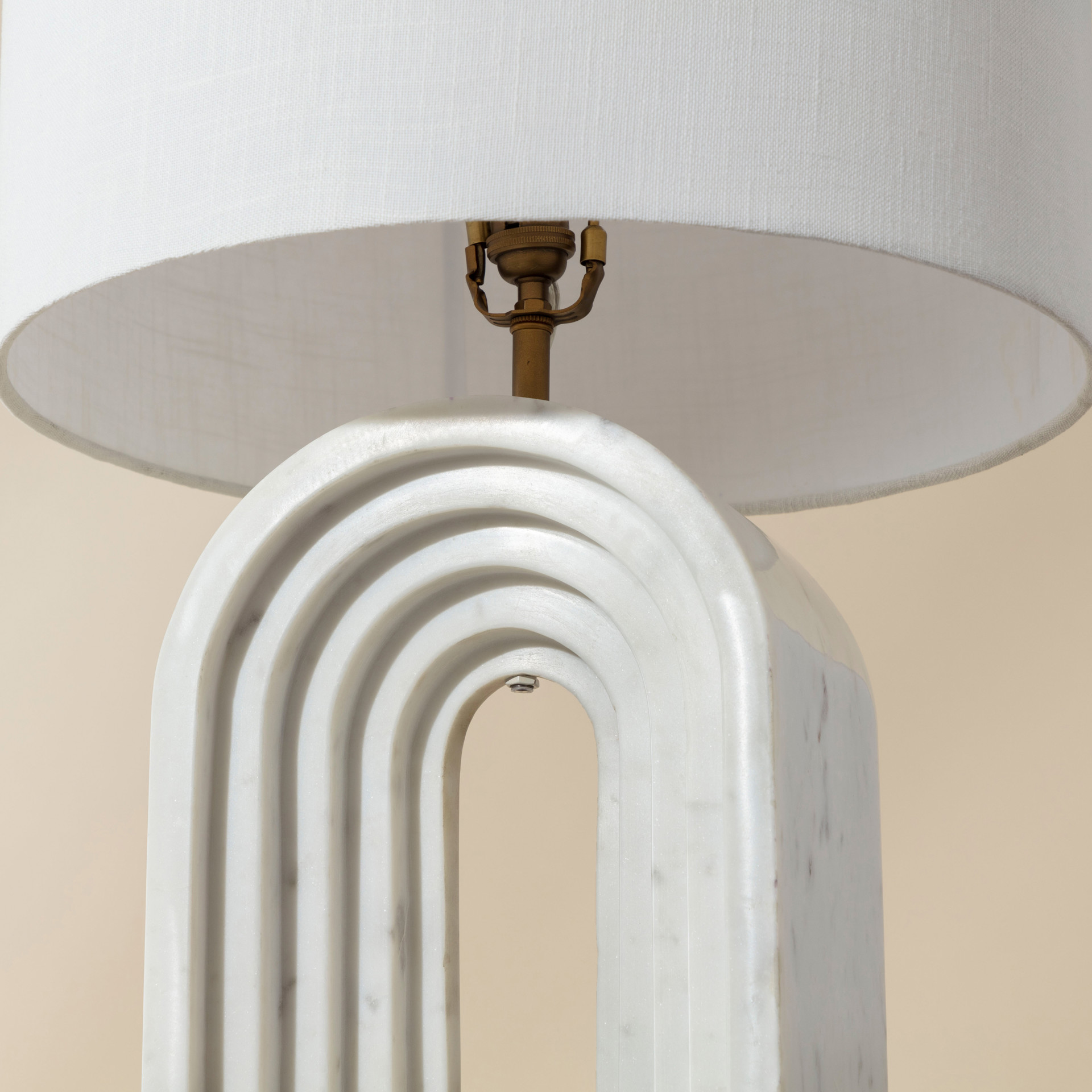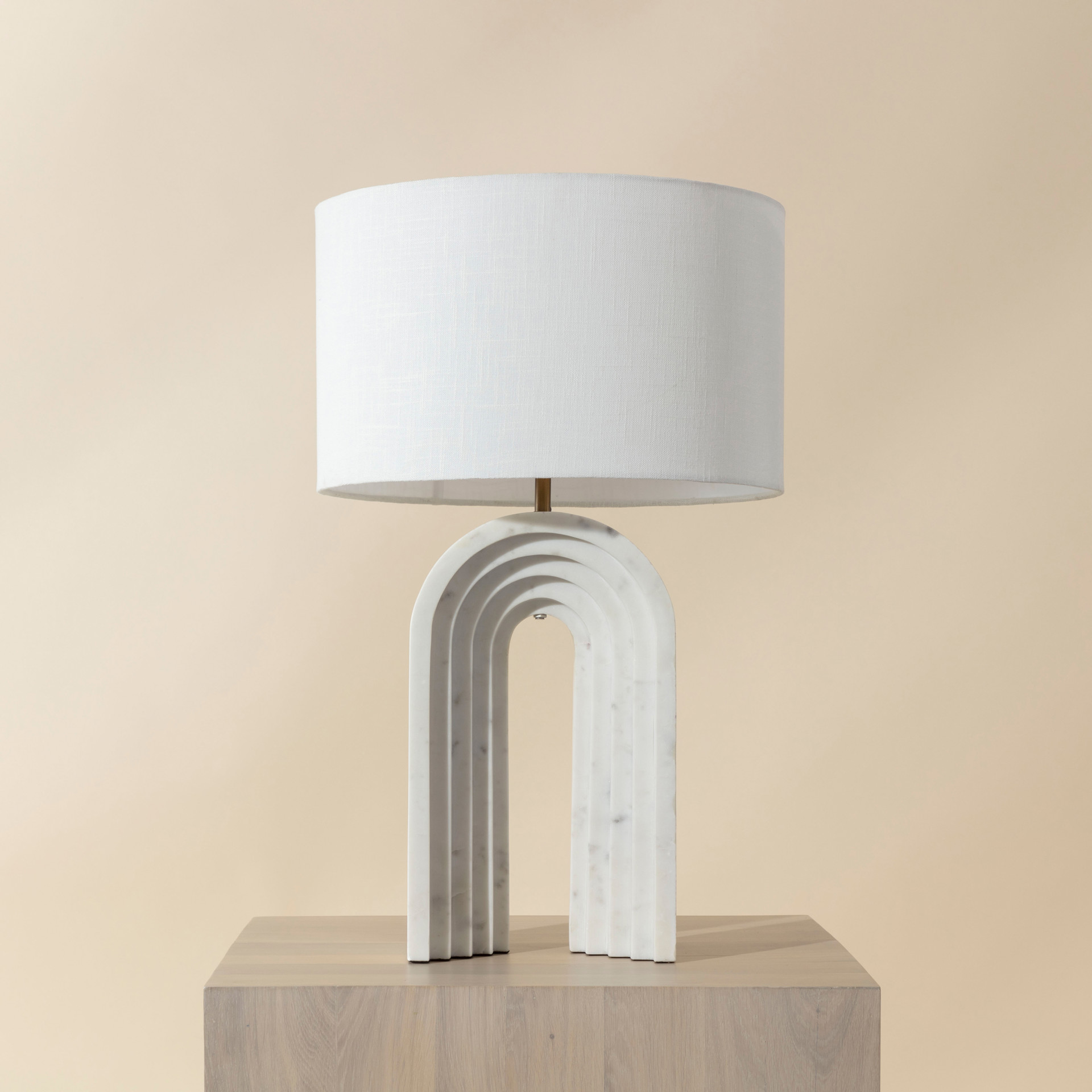 La composition audacieuse de la lampe de table Sensi est issue d'une architecture intriguante sculptée à la main dans du marbre blanc de Banswara avec des arches agréables qui vous plongent dans le design contemporain moderne de la lampe.