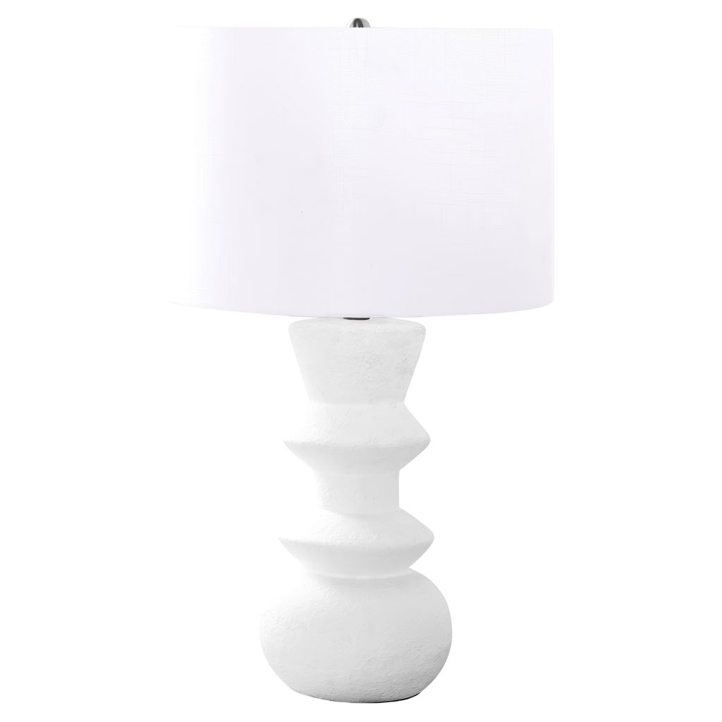 La base unique en céramique texturée ajoute du caractère et du charme, tandis que l'abat-jour chic en tissu diffuse délicatement la lumière pour créer une ambiance chaleureuse, parfaite pour éclairer n'importe quelle pièce.