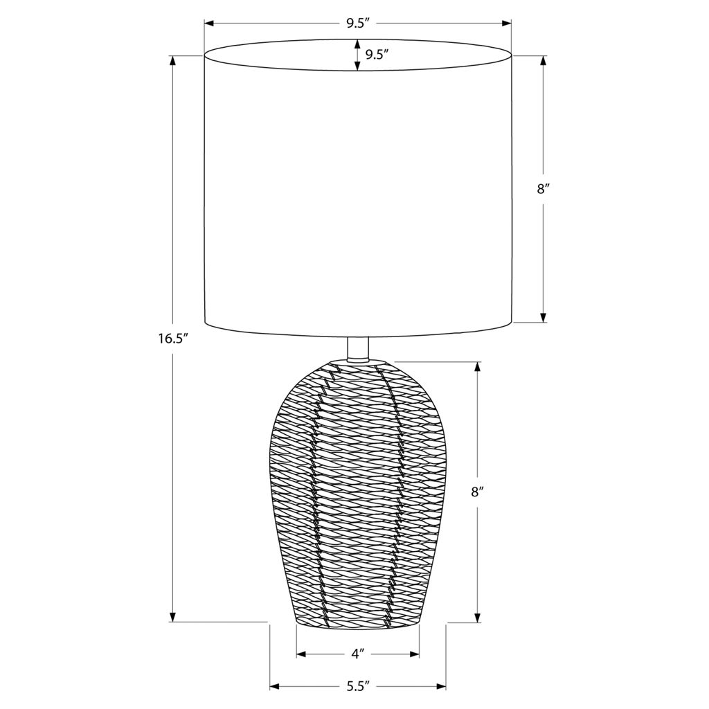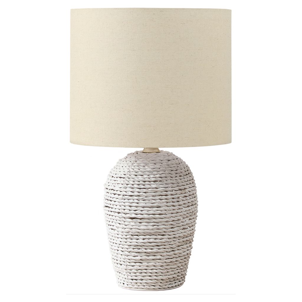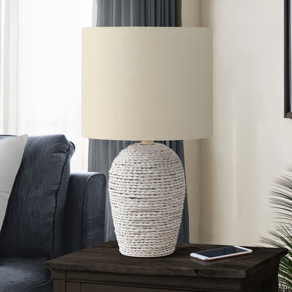 Conçue avec une base à finition texturée en matériau de rotin tissé naturel, cette lampe ne sert pas seulement un objectif fonctionnel, mais insuffle également une esthétique tendance à votre espace. L'interrupteur à molette marche/arrêt permet une utilisation facile avec une ampoule standard de 60 W (non incluse), pour illuminer vos alentours sans effort.