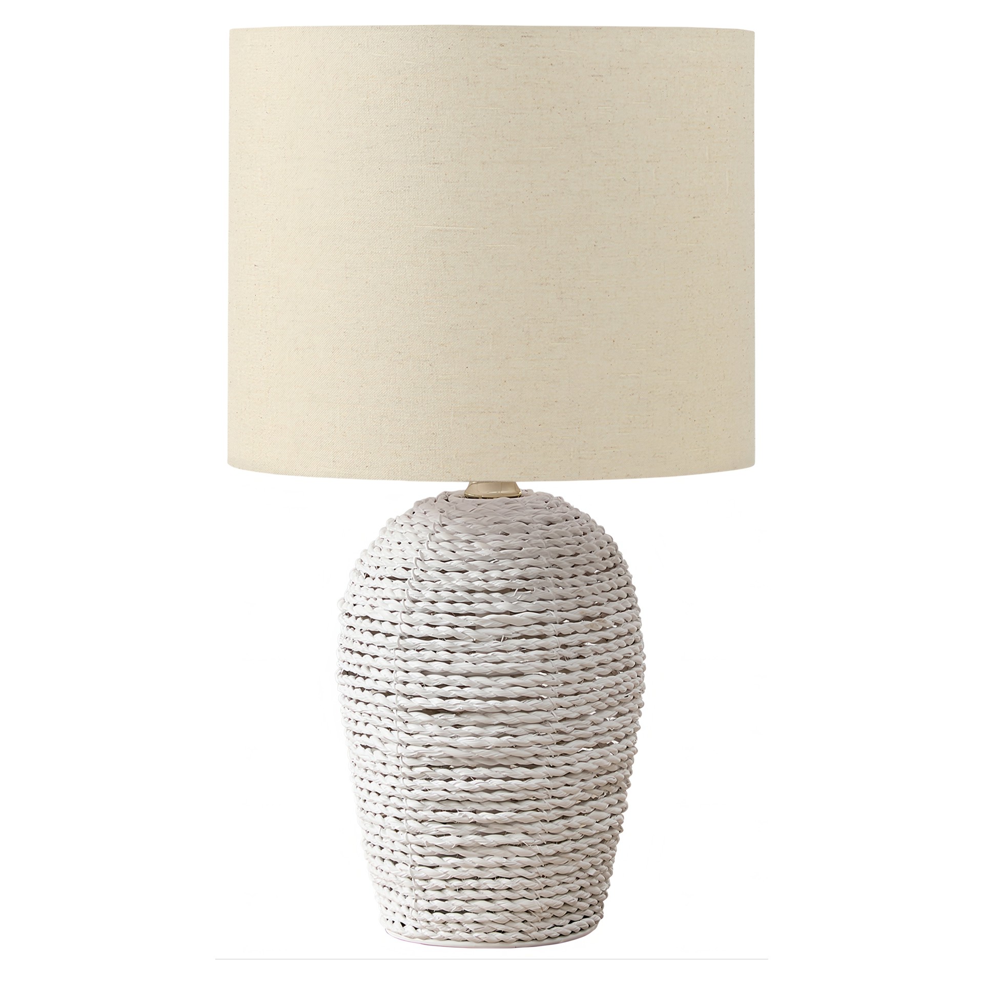 Élevez votre décoration casual et transitionnelle avec notre lampe de table élégante de 17 po de hauteur, dotée d'une base en rotin blanc chic et d'un abat-jour en tissu beige doux.