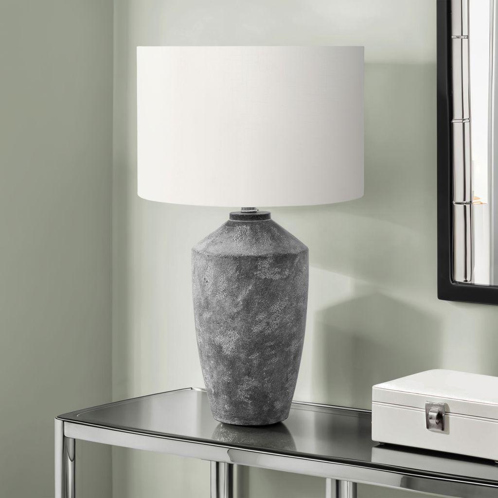 Mettez à jour votre salon, votre chambre ou votre bureau en un véritable phare de modernité et d'élégance avec cette lampe de table de 25 po de hauteur. Conçue avec une base en béton gris audacieuse au fini vieilli, cette lampe s'associe parfaitement avec un abat-jour en tissu ivoire moderne qui diffuse doucement la lumière, créant une ambiance invitante à la fois décorative et fonctionnelle.