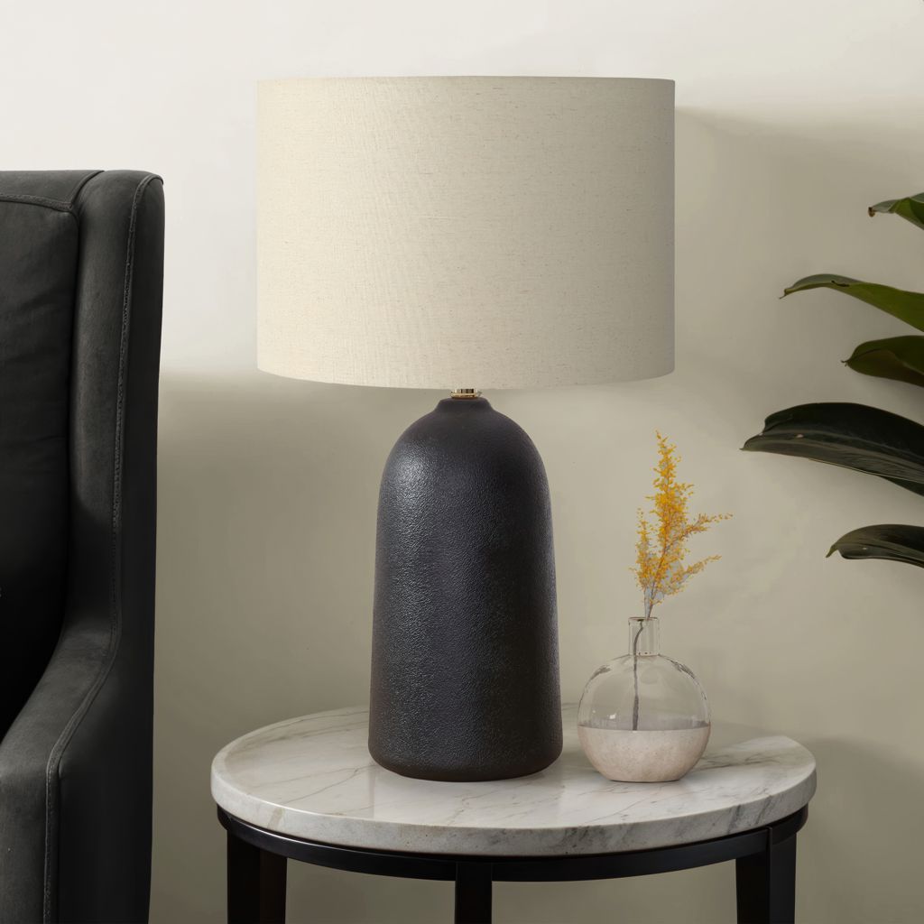 Transformez votre espace en un refuge cosy et illuminez votre monde avec cette lampe de table en céramique simple mais élégante et tendance, avec un abat-jour contemporain en tambour, et faites une déclaration audacieuse qui reflète votre style unique !