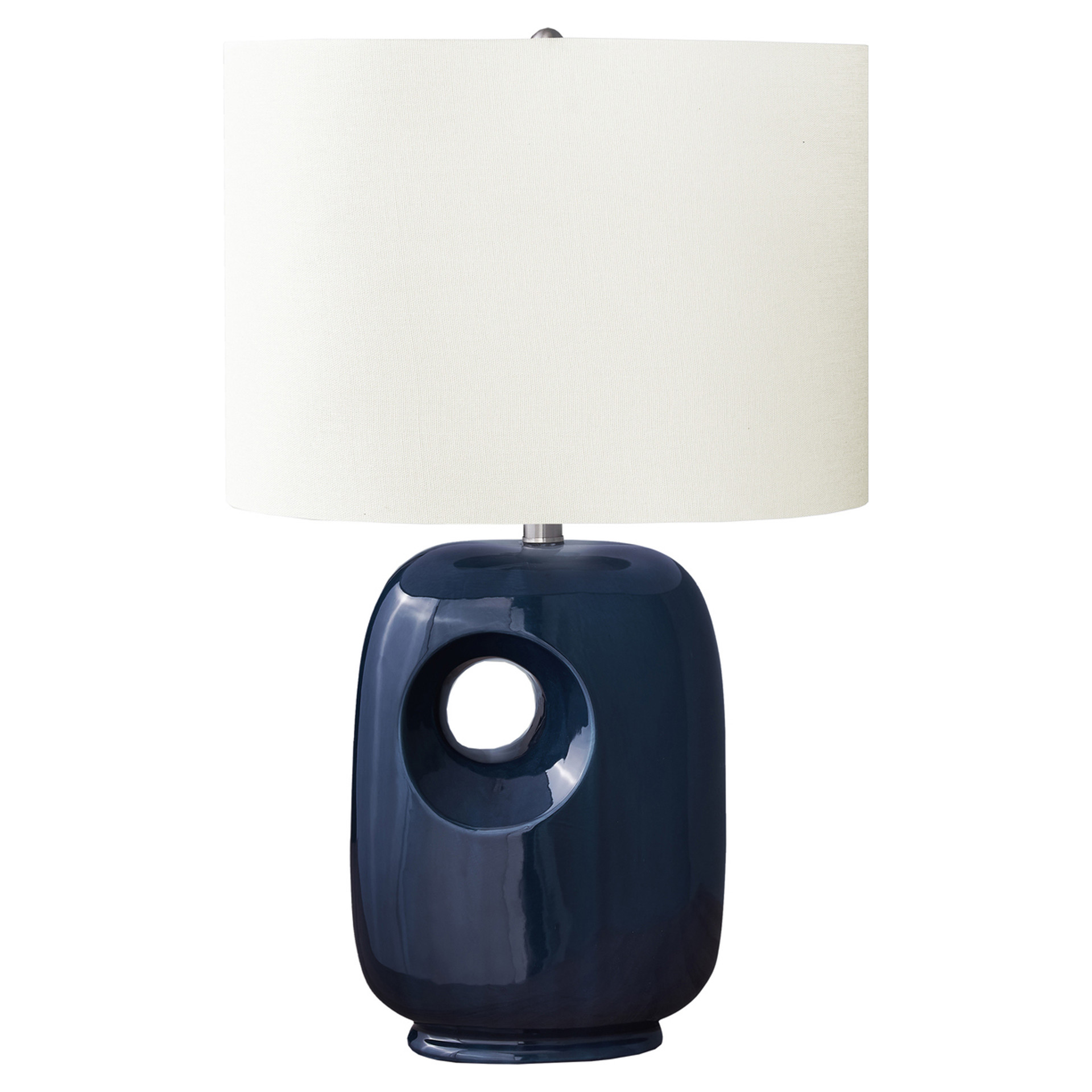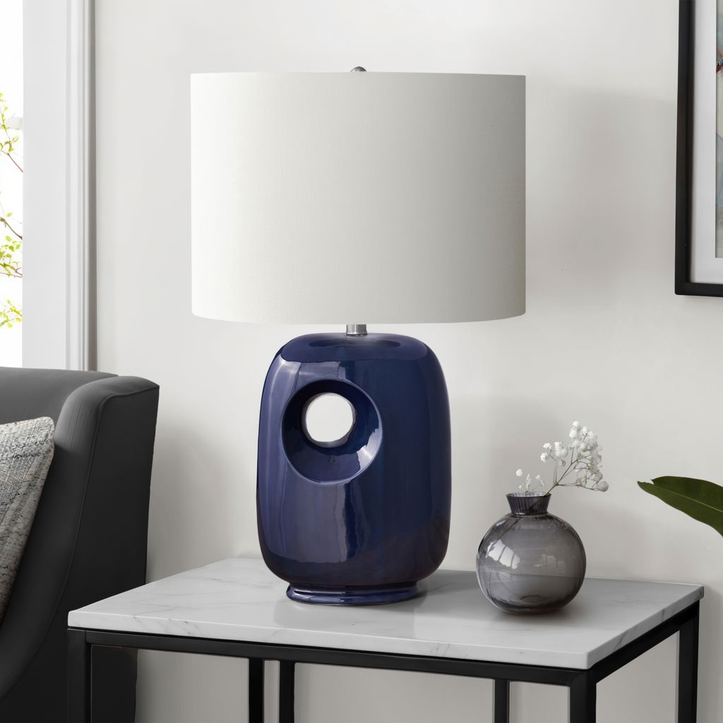 Illuminez votre espace avec cette lampe de table moderne et tendance de 26" de hauteur, dotée d'une base en céramique grise foncée élégante et surmontée d'un abat-jour en tissu mélangé lin ivoire.