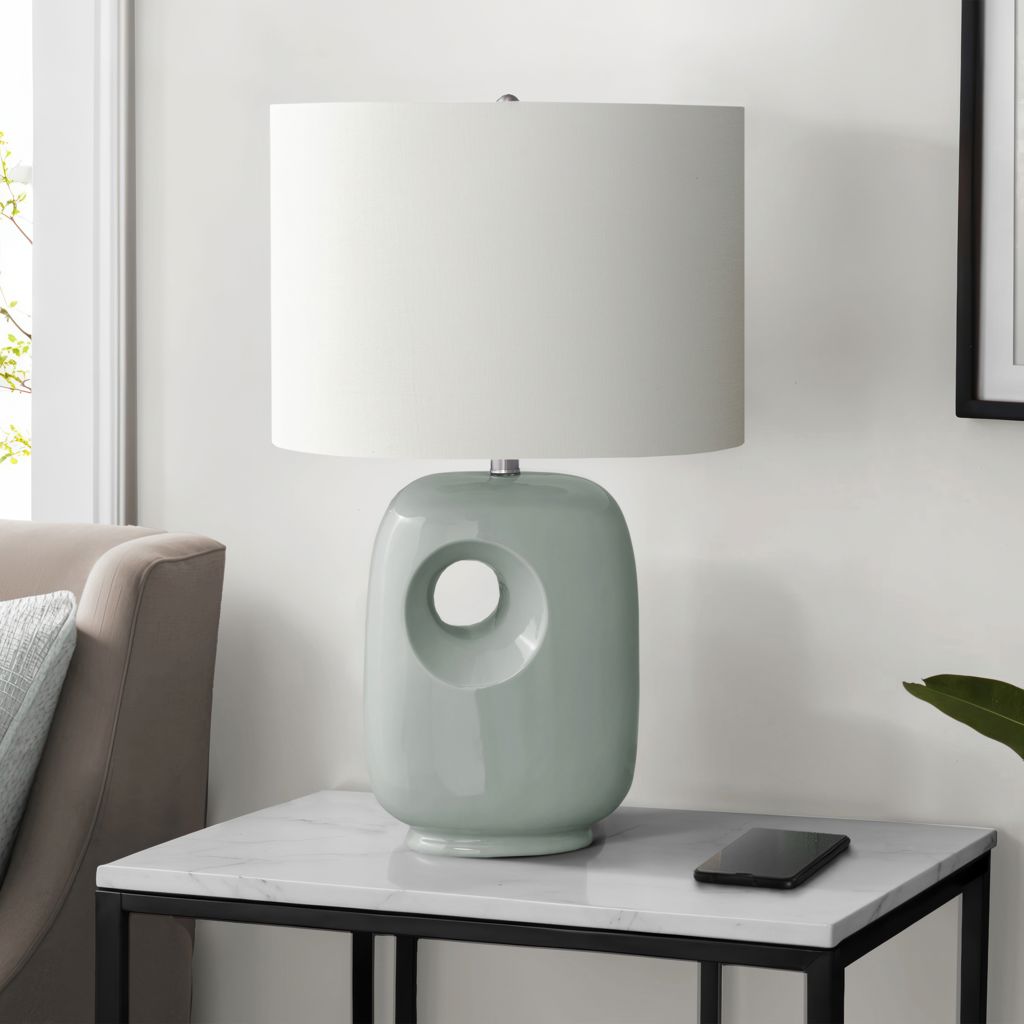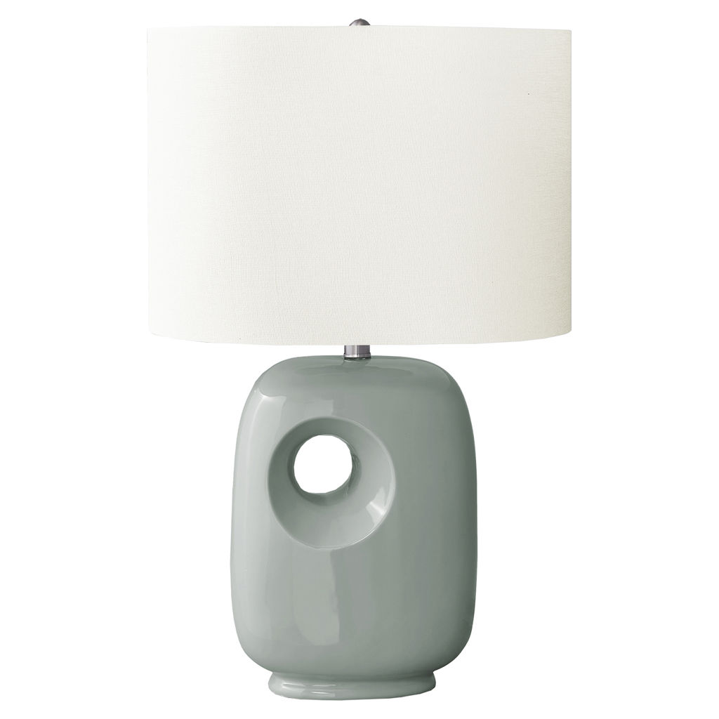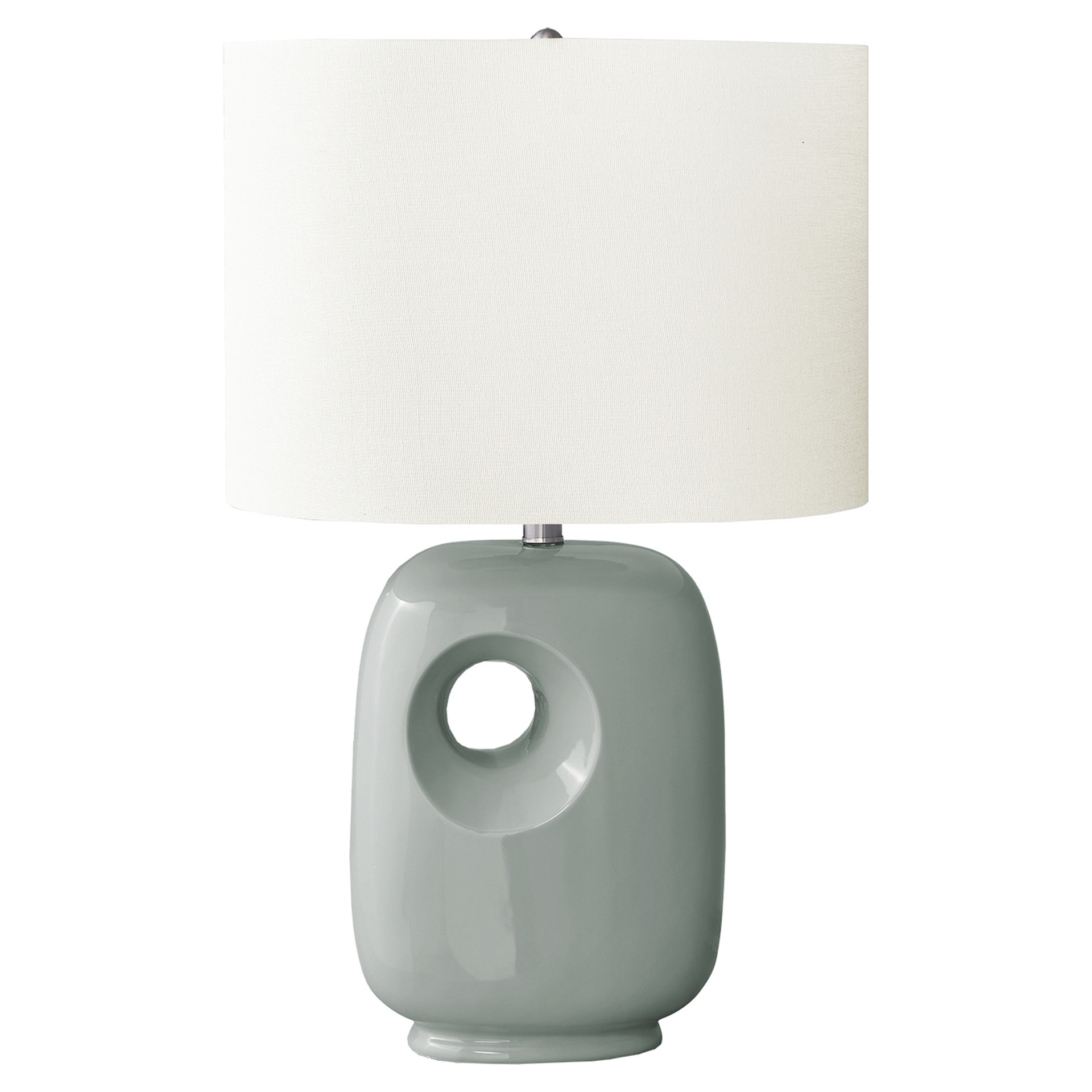 Illuminez votre espace avec cette lampe de table moderne et tendance de 26" de hauteur, dotée d'une base en céramique grise foncée élégante et surmontée d'un abat-jour en tissu mélangé lin ivoire.