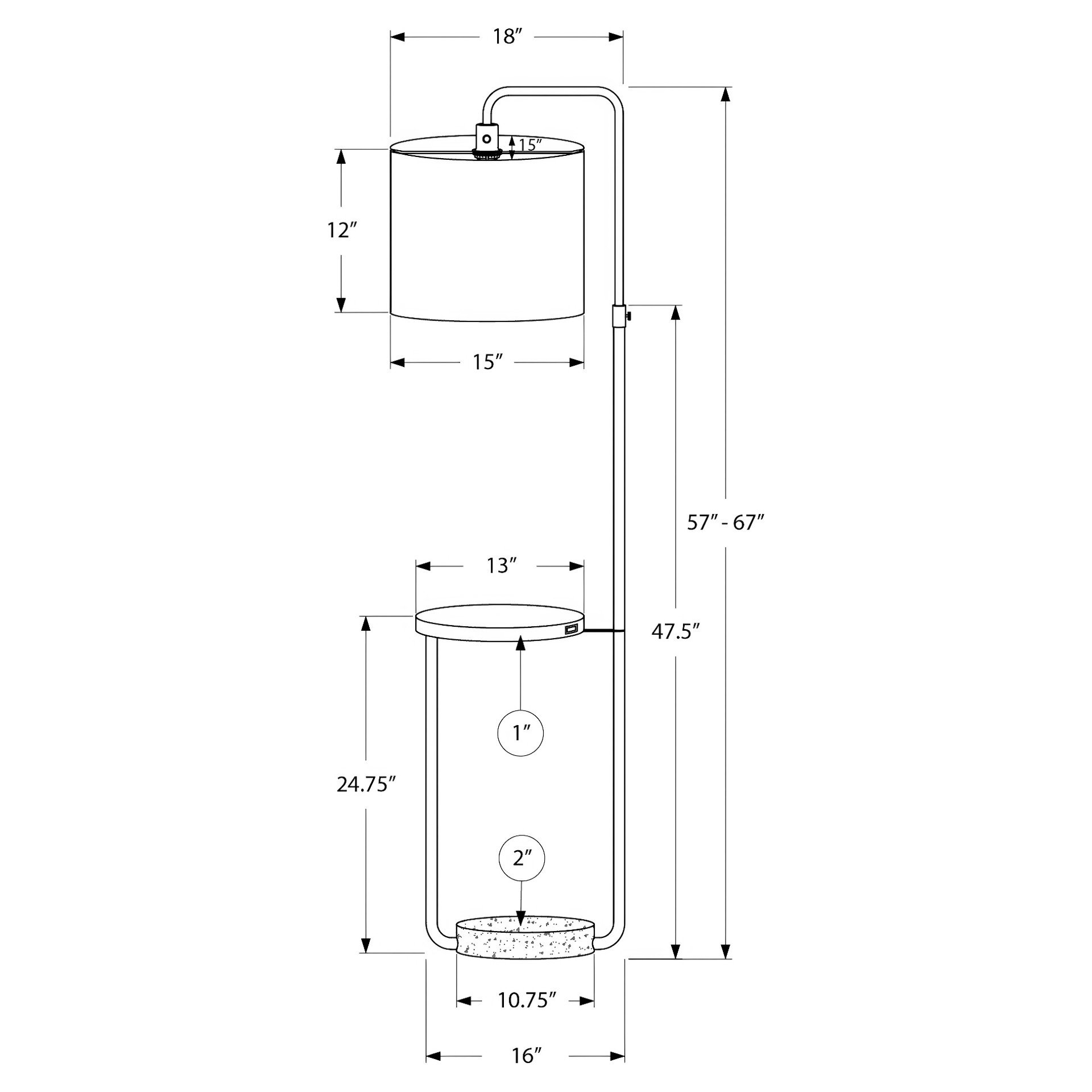 Lampe sur pied table d'appoint intégrée Monarch Specialties