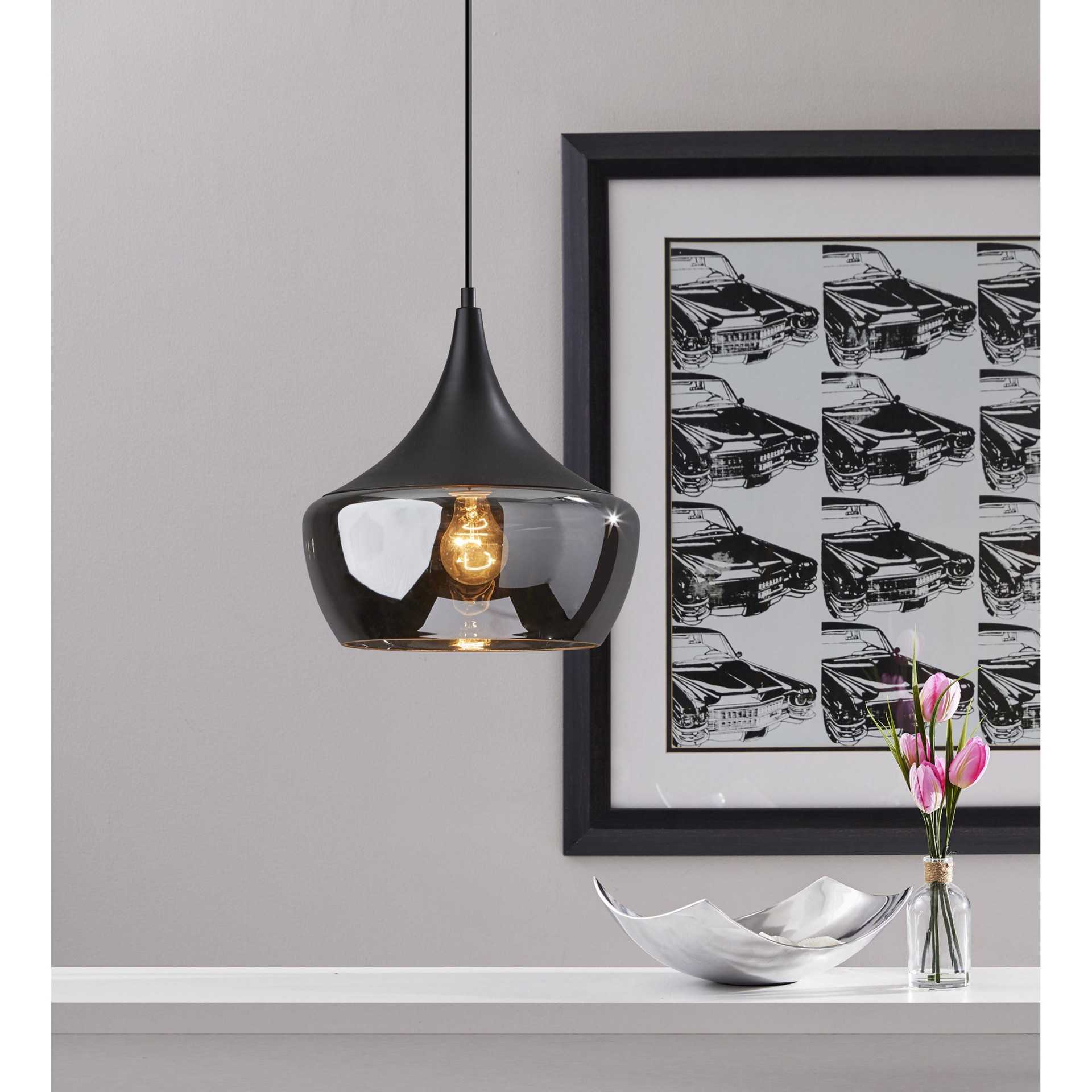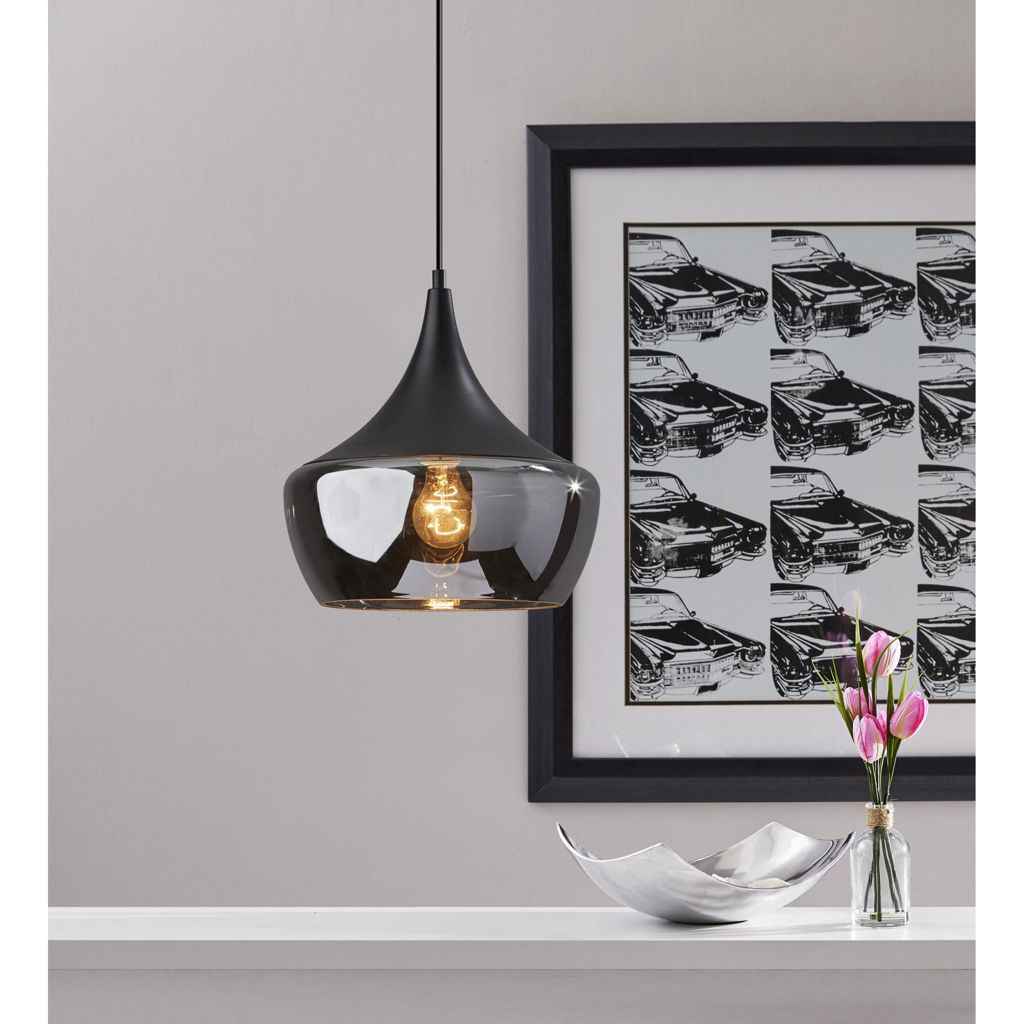 Ajoutez une touche d'élégance contemporaine avec cette suspension aux formes organiques séduisantes. Son abat-jour en verre fumé à la silhouette évasée révèle une ampoule décorative qui crée un effet lumineux chaleureux.