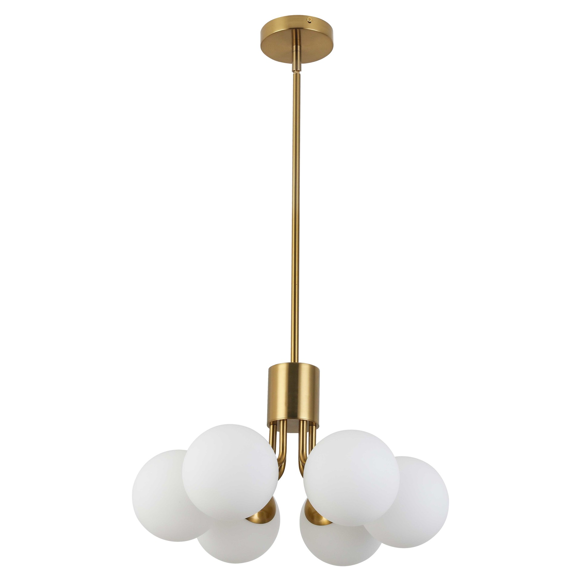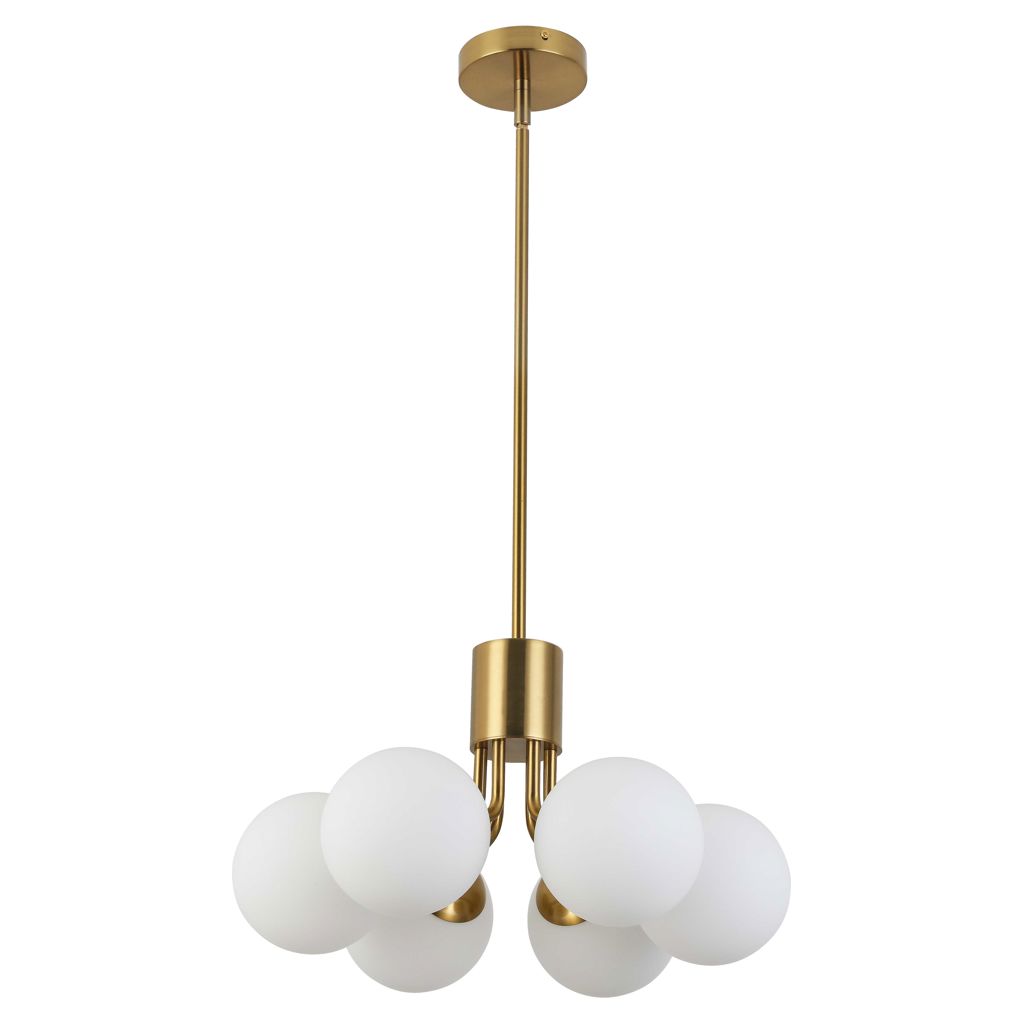 Dainolite Suspension contemporaine Amanda, avec métal en laiton vieilli électrolytique et verre opale blanc pour le plafond avec 6 ampoules halogènes G9, (non incluses) 25 watts chacune, est à intensité variable et approuvée UL pour les endroits humides avec une garantie limitée de 1 an.