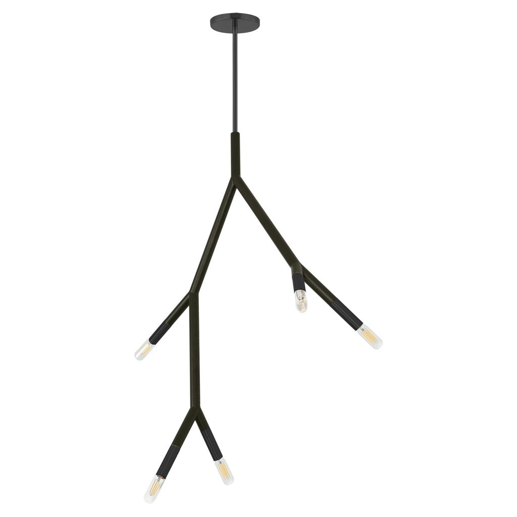 Le luminaire Dainolite Transitional Morgan, avec métal noir mat peint pour le plafond avec 5 ampoules à incandescence E12, (non incluses) 60 watts chacune, est à intensité variable et approuvé UL pour les endroits humides avec une garantie limitée de 1 an.