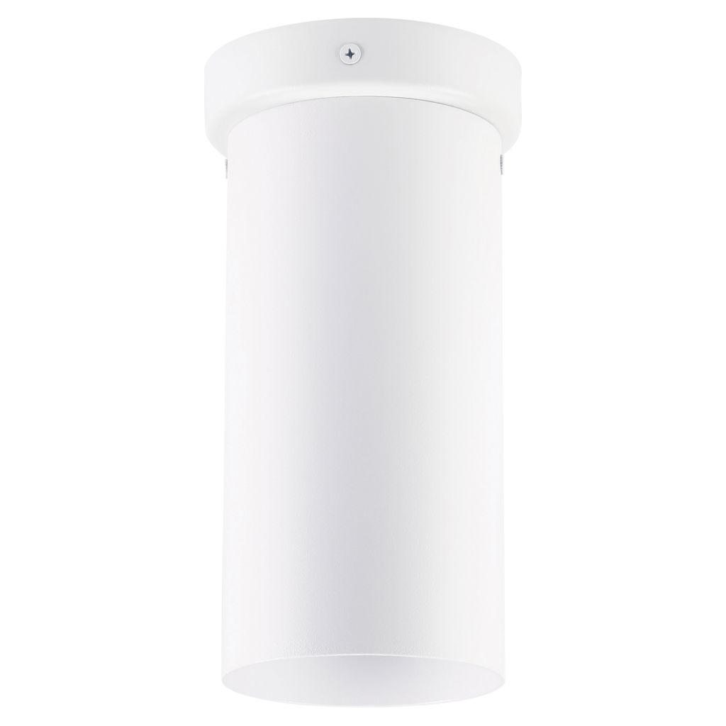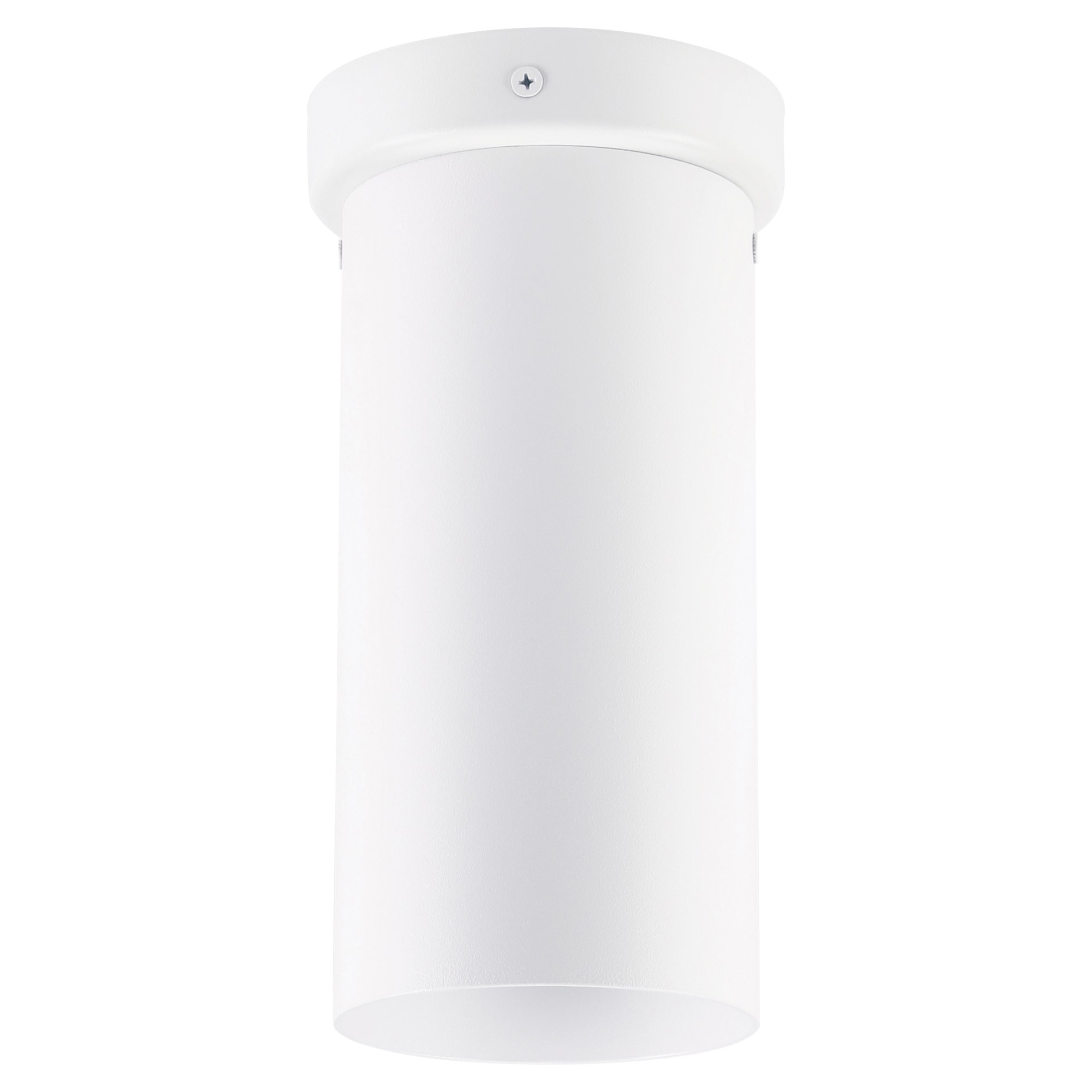 Le plafonnier slim cyndrical Tortoreto fini en blanc est conçu pour évoquer un contraste marqué entre audace et subtilité, avec un luminaire affirmé et minimaliste illuminant une lumière projetée.