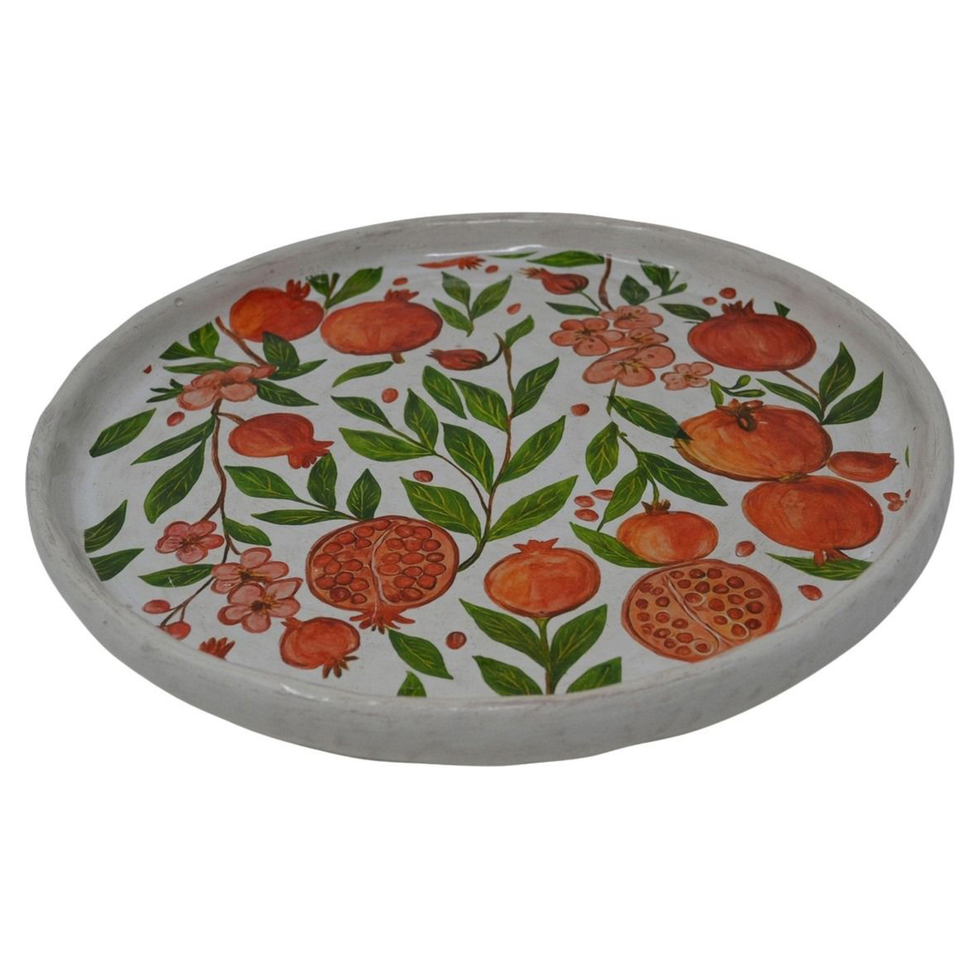 Plateau décoratif en style toscan, orné de motifs de pommes grenades, parfait pour le service ou pour sublimer votre décoration intérieure.