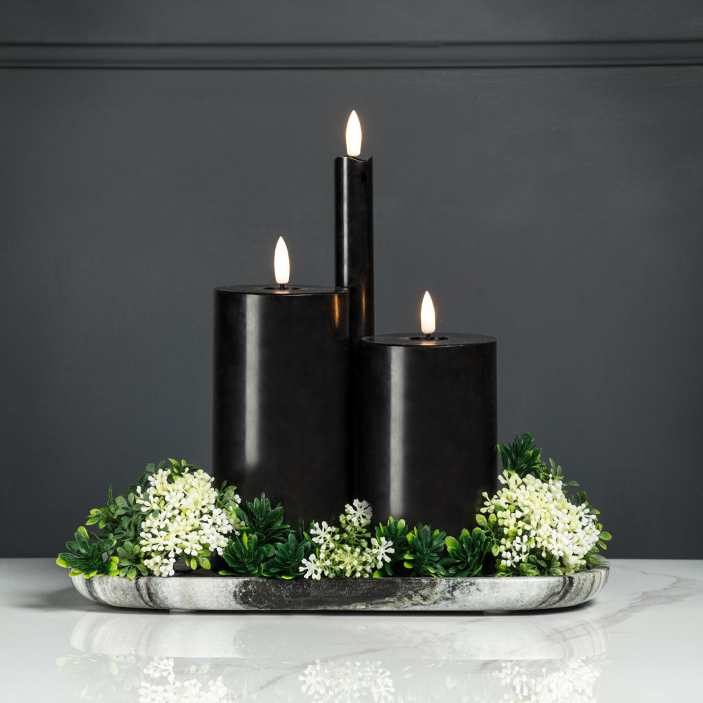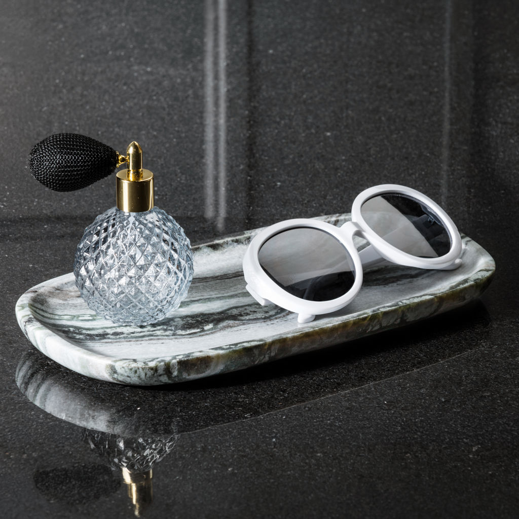 Ce petit plateau oblong en marbre noir est d'une élégance remarquable.