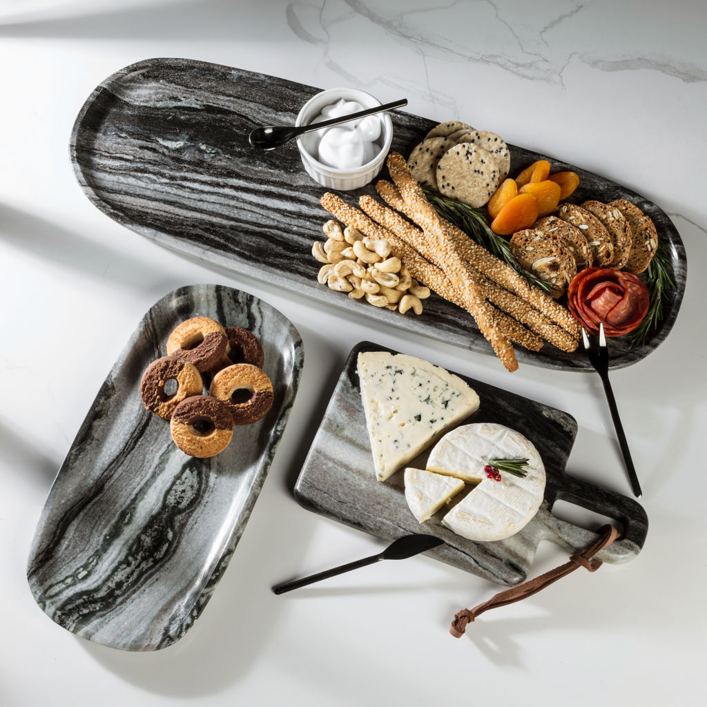 Sa surface lisse et polie, rehaussée de veines naturelles, le rend parfait pour servir apéritifs, desserts ou fromages.