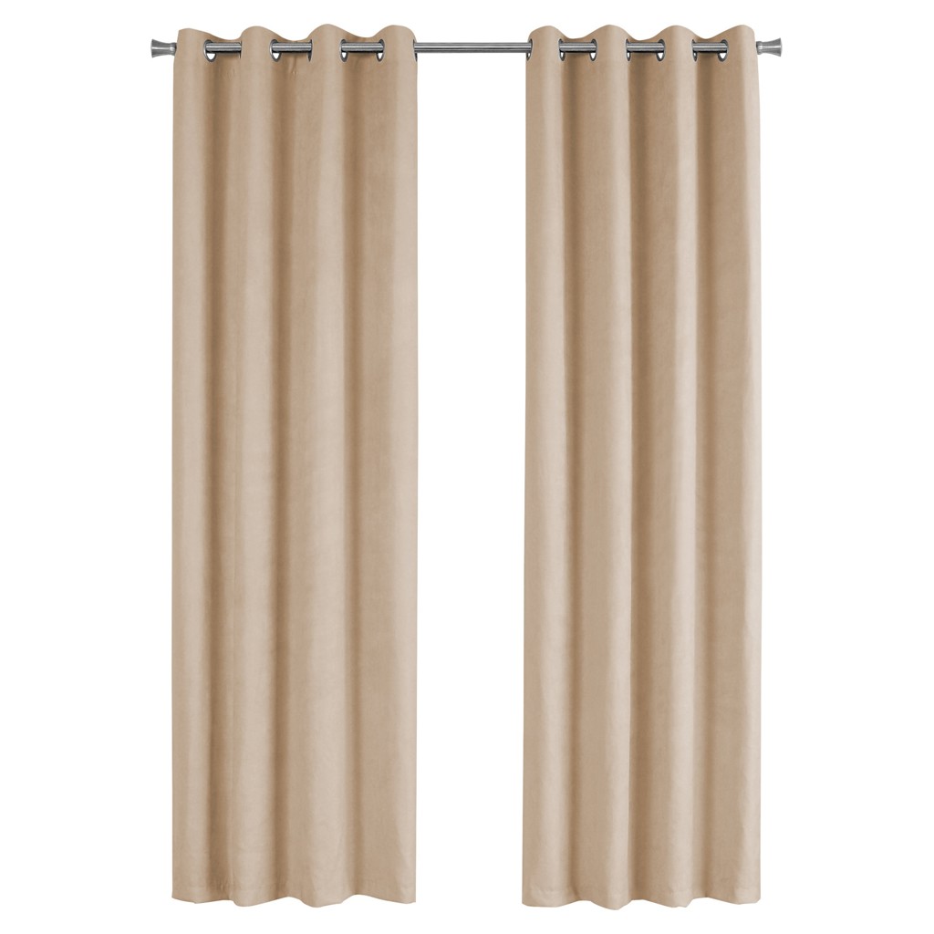 Cet ensemble de 2 rideaux beiges aux lignes épurées peut être placé dans un salon, une chambre ou une salle à manger.