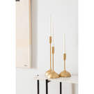L'opulence contemporaine entre dans la salle à manger du milieu du siècle avec ces bougeoirs en aluminium. Apportant de la lumière par son utilité et sa conception, la finition feuille d'or rayonne lorsque les bougies sont allumées.