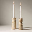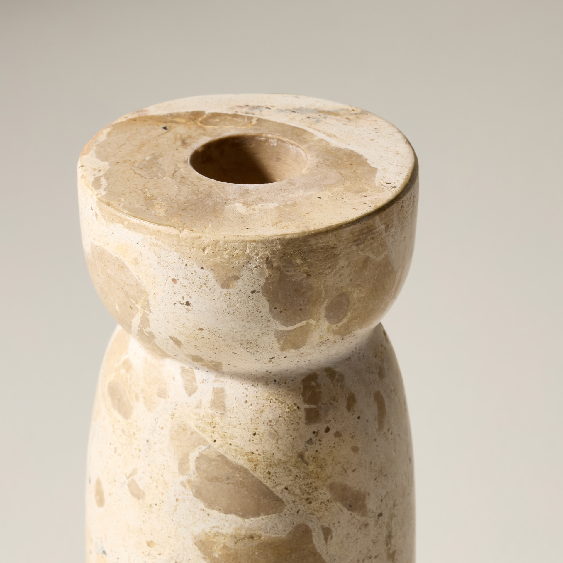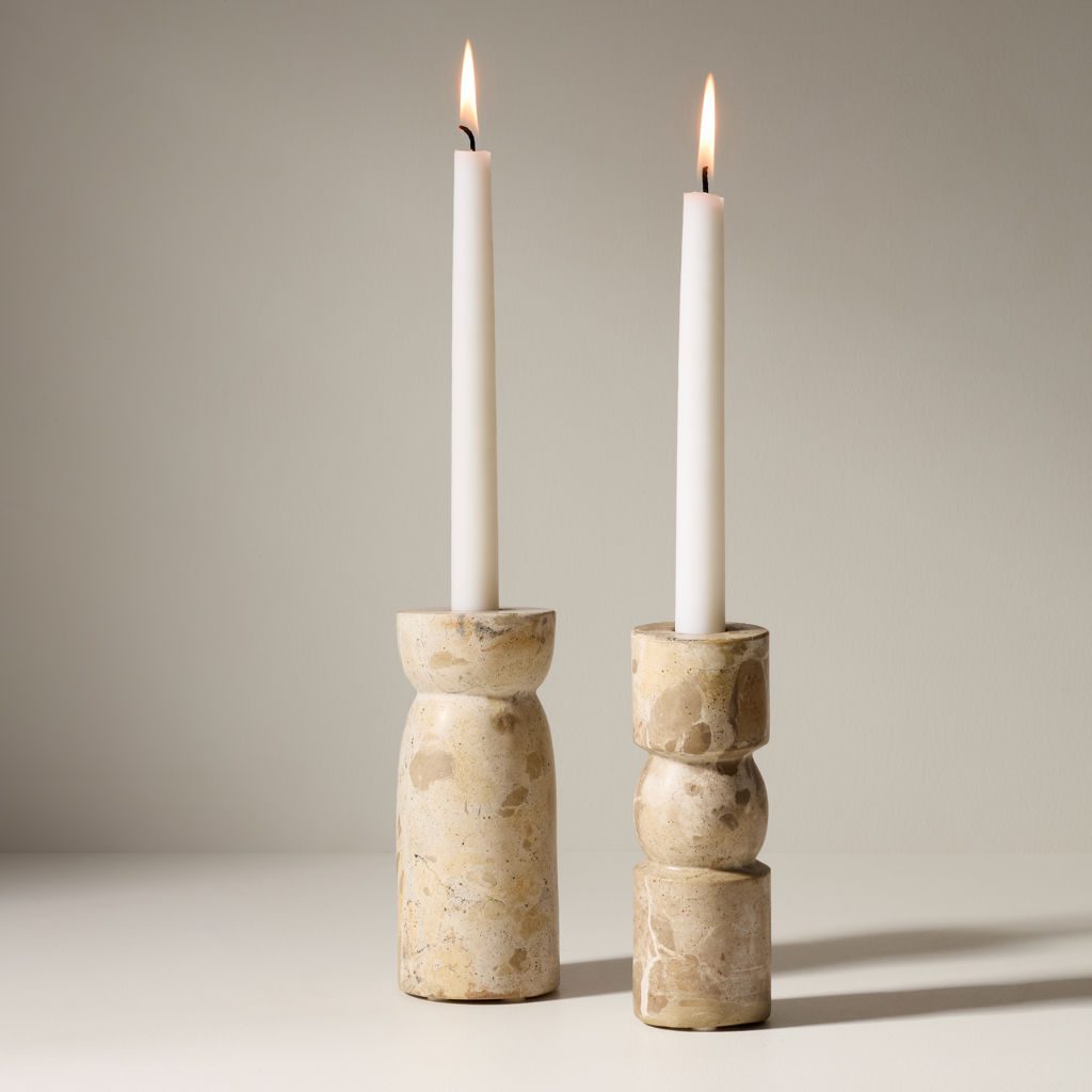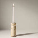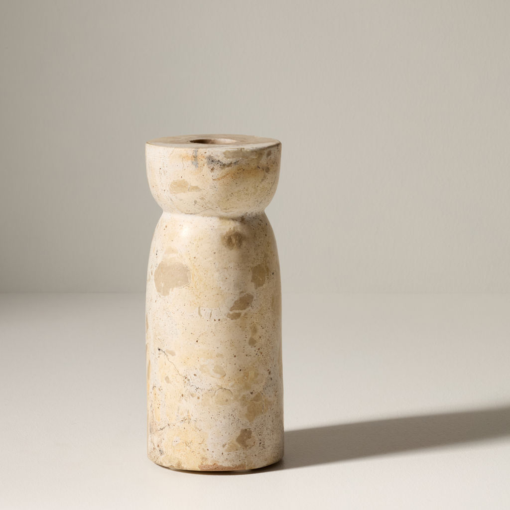 La forme du chandelier en marbre évoque une colonne antique, qui à son sommet, offre une encoche pour accueillir une bougie, alliant ainsi art et utilité.