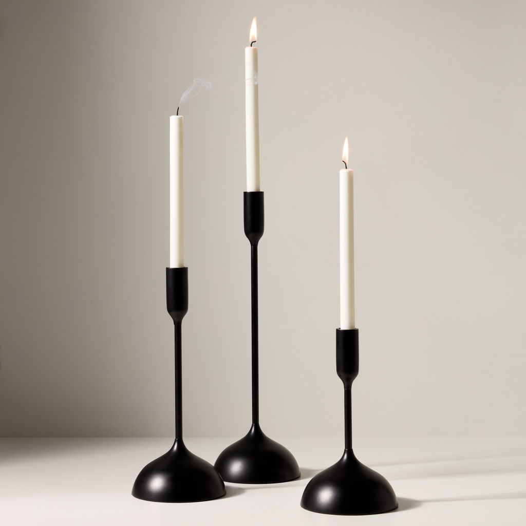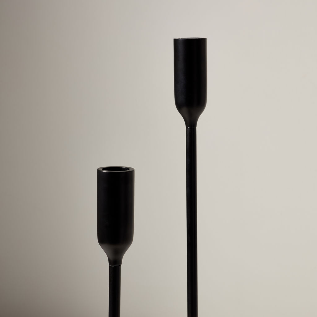 Faites ressortir votre espace avec ces chandeliers décoratifs en fonte d´aluminium Chambers. Cet ensemble exquis de bougeoirs est fabriqué à partir de fonte d´aluminium de qualité supérieure pour une fiabilité durable et présente une finition noire mate résistante qui assure un attrait durable et immaculé.