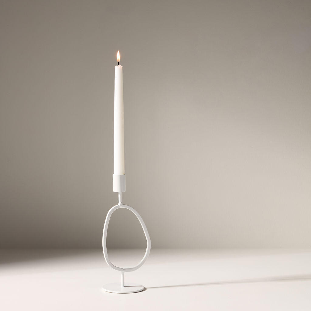 Bougeoir design en métal blanc, à l'allure minimaliste et élégante.