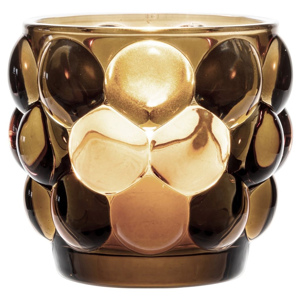 Réalisé avec une grande finesse, ce porte-bougie présente un design unique en verre bulle, créant un jeu d'ombres et de lumière captivant.