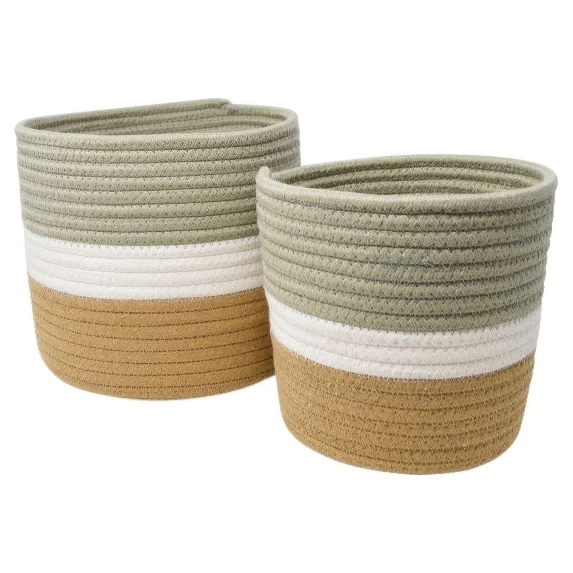 Organisez votre espace avec style grâce à ce lot de deux paniers de rangement en corde tressée. Avec un dégradé de couleurs naturelles, comprenant du vert sauge, du blanc et du beige, ces paniers apportent une touche de fraîcheur et de chaleur à votre intérieur.