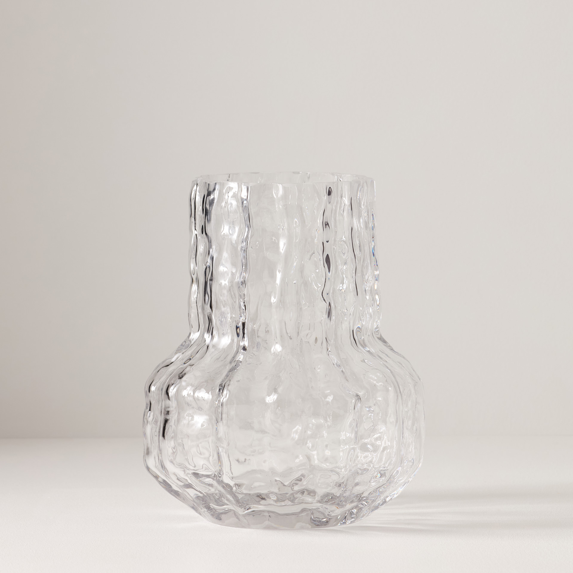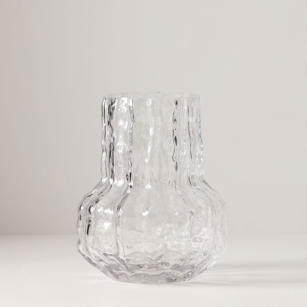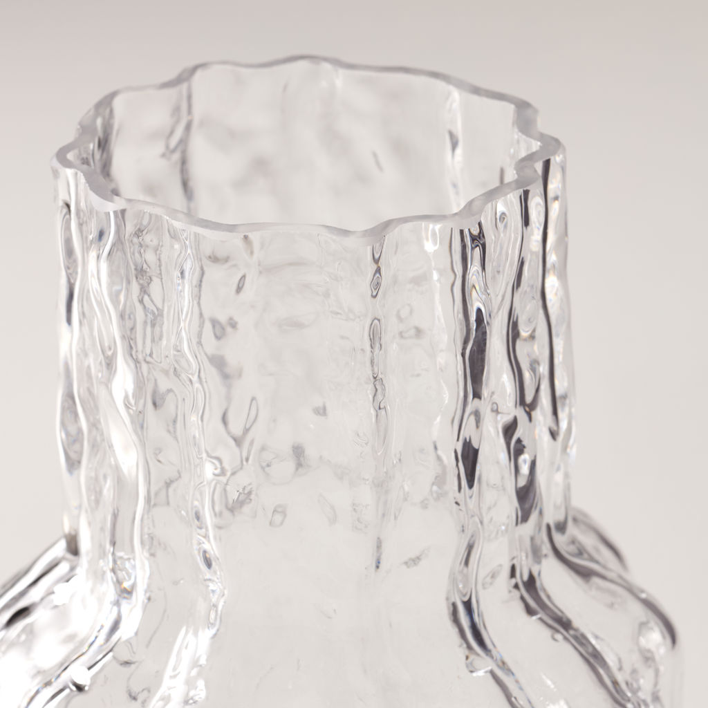 Rehaussez le charme de votre décoration d'intérieur avec notre vase flacon en verre transparent présentant une texture unique.
