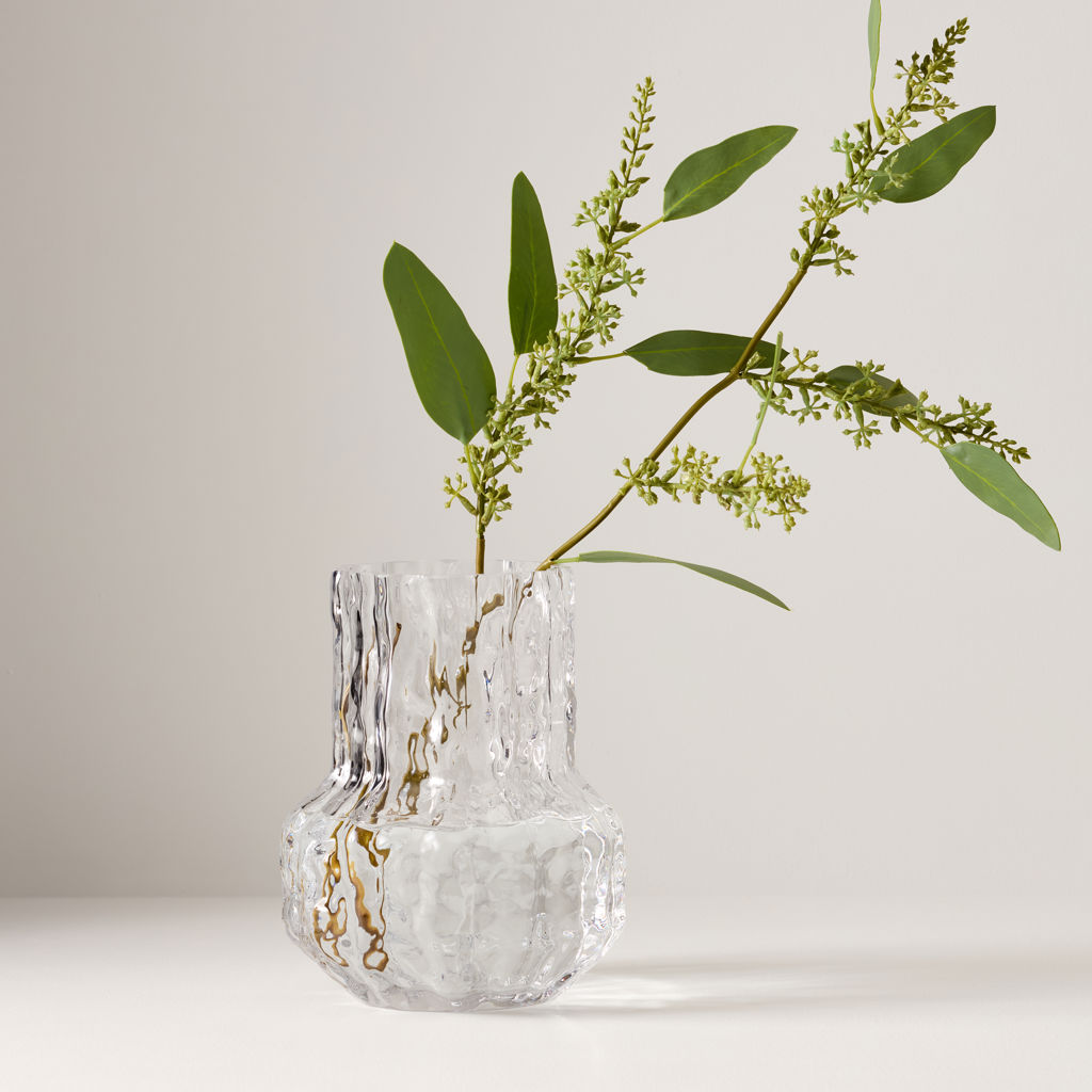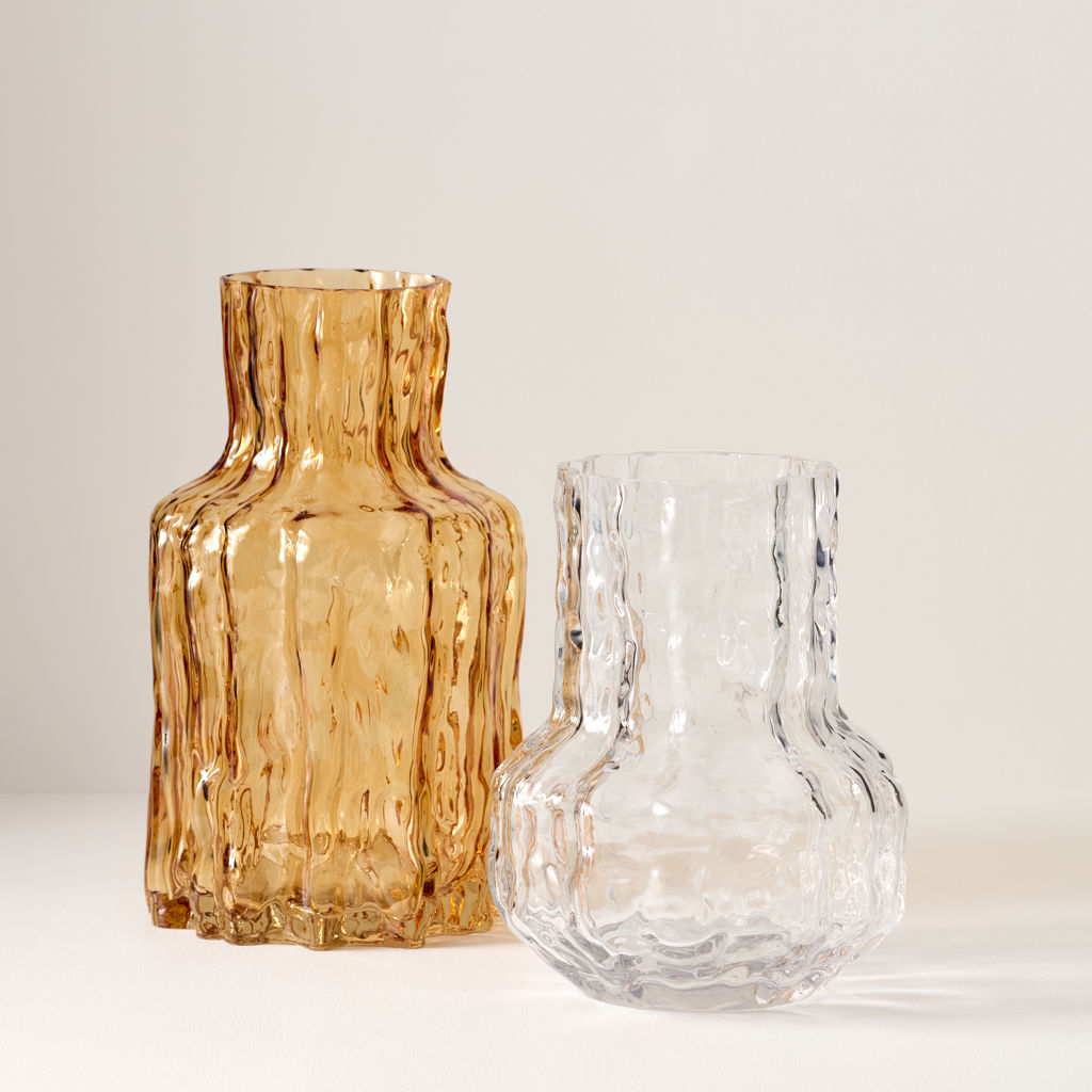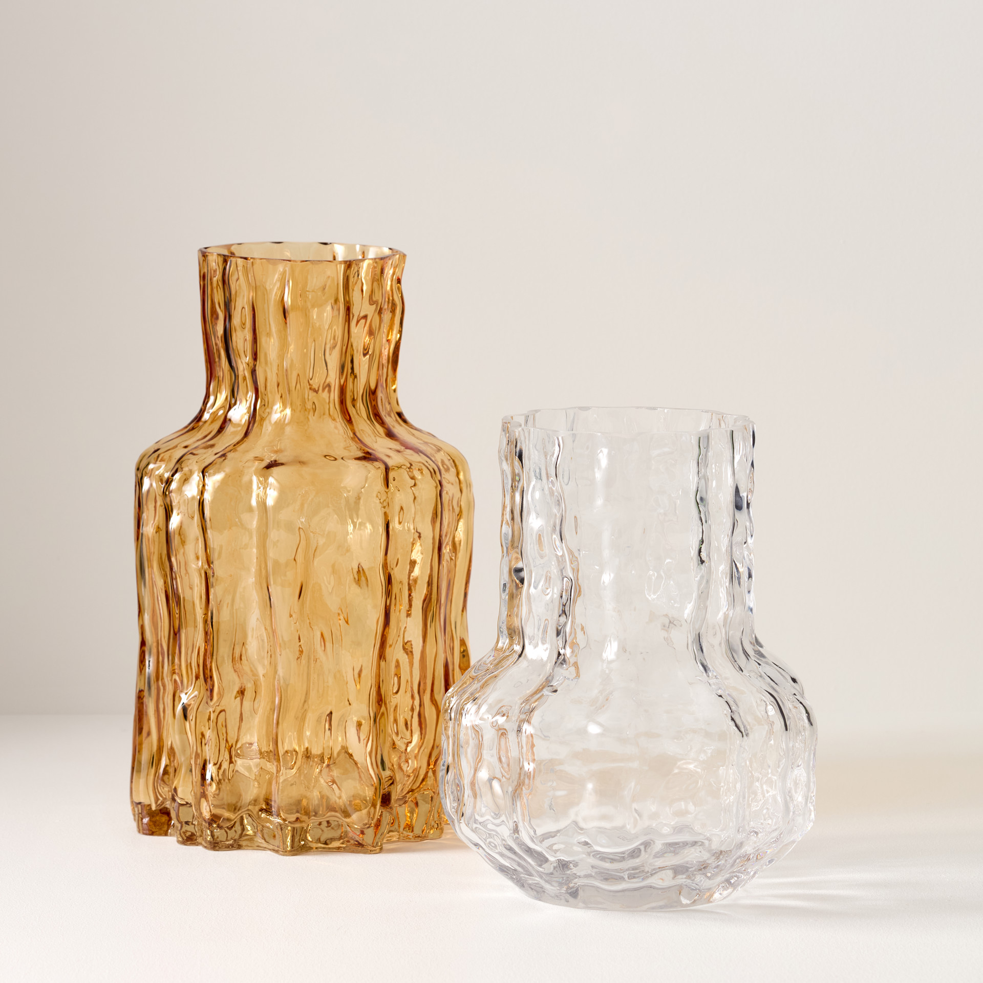 Rehaussez le charme de votre décoration d'intérieur avec notre vase flacon en verre transparent présentant une texture unique.