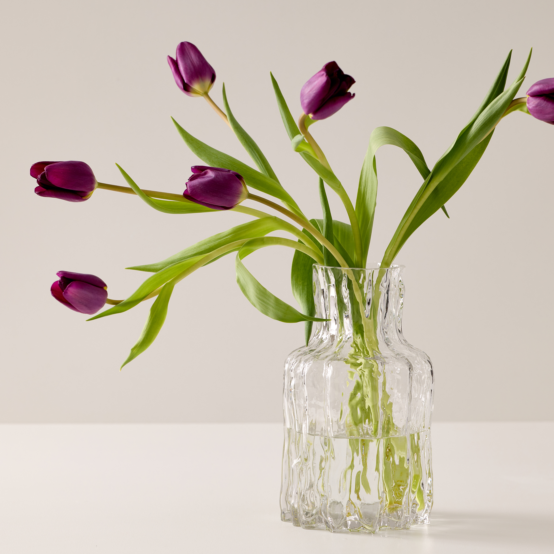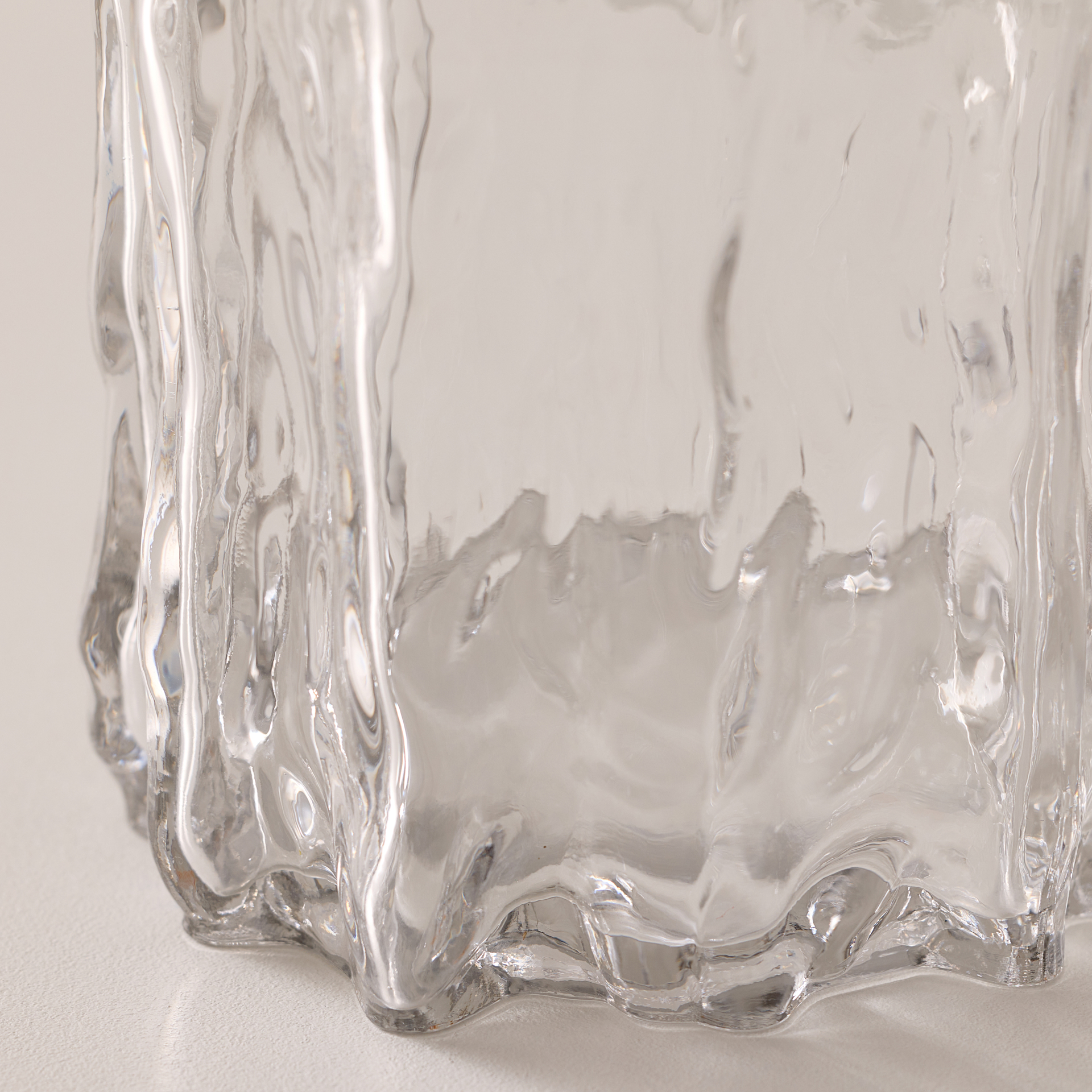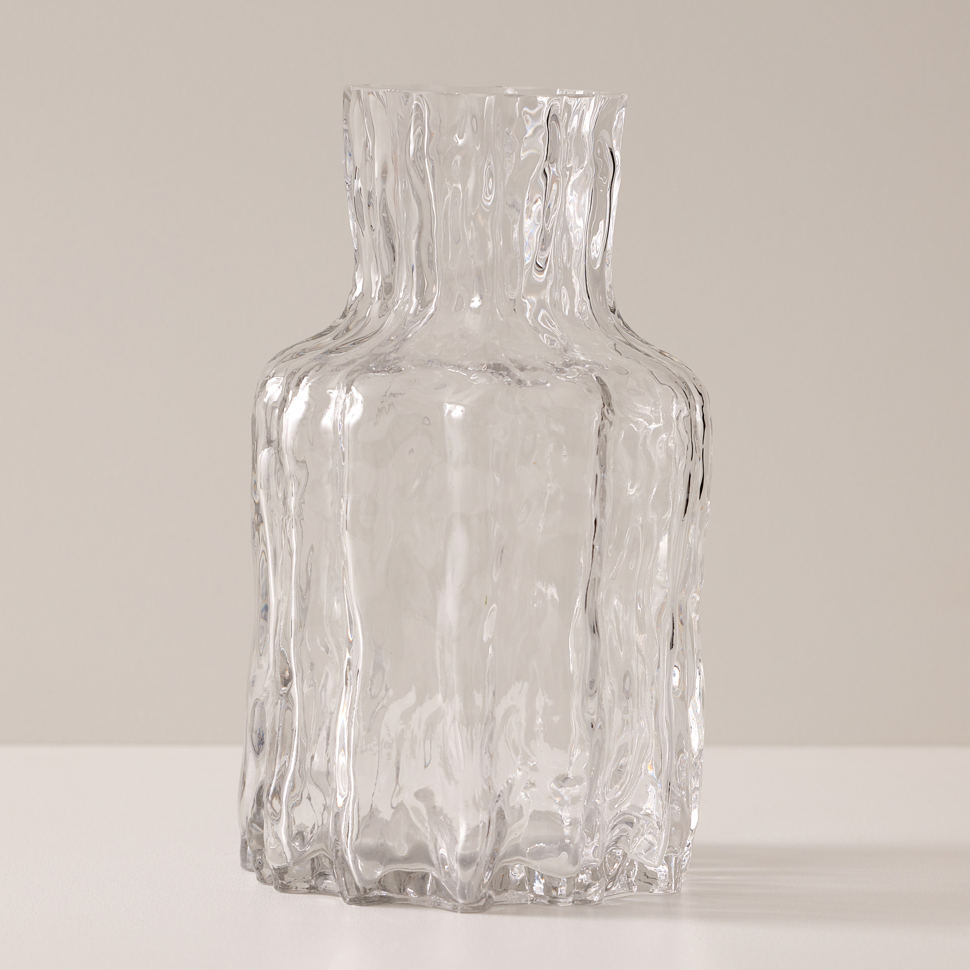 Rehaussez le charme de votre décoration d'intérieur avec notre vase flacon en verre transparent présentant une texture unique.