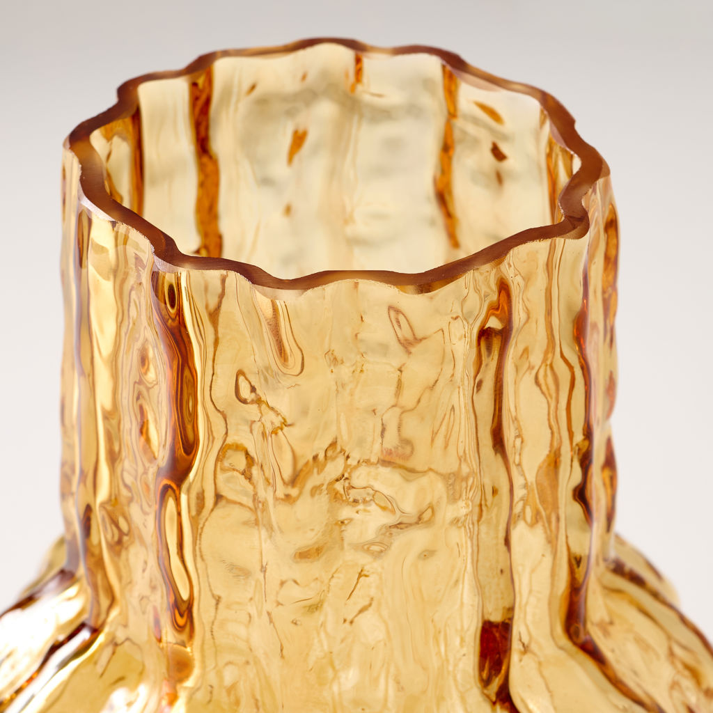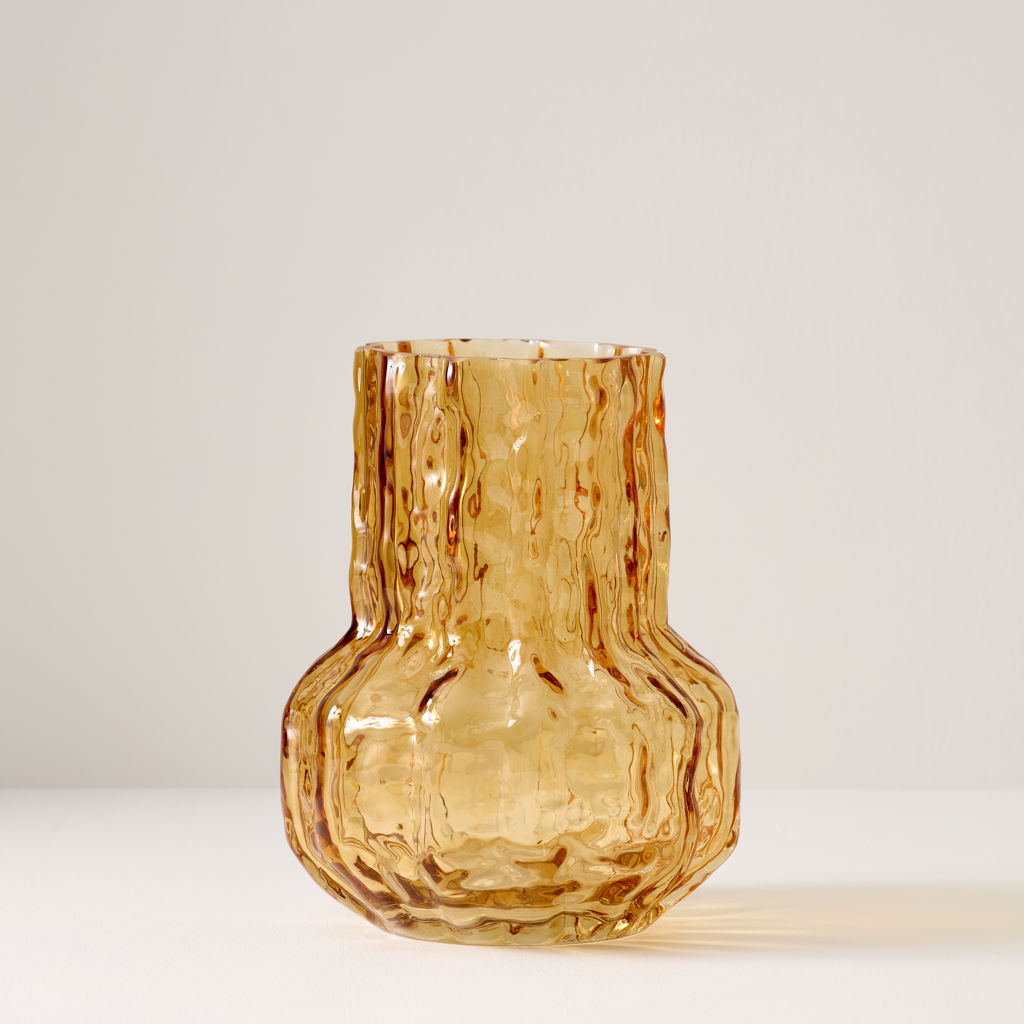 Rehaussez le charme de votre décoration d'intérieur avec notre vase flacon en verre ambré présentant une texture unique.