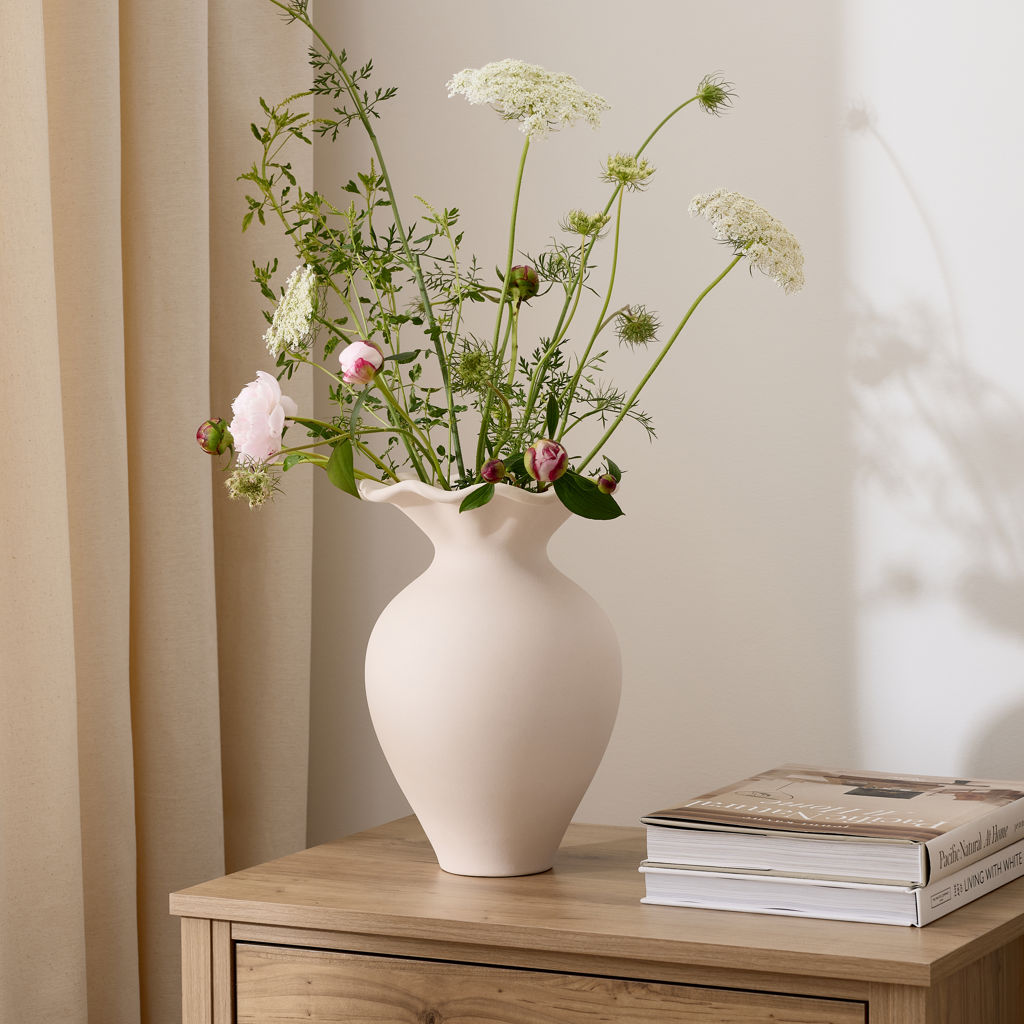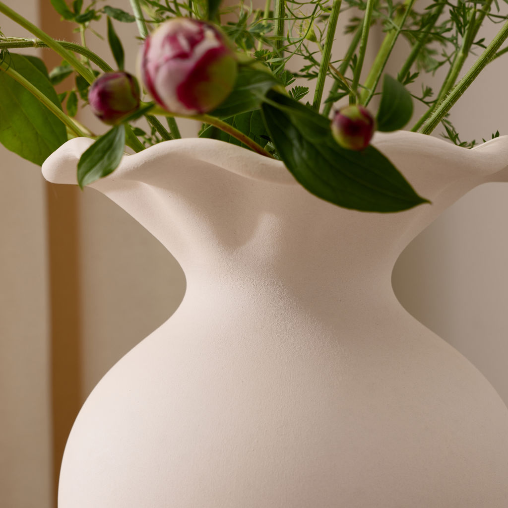 Né du feu du four, le récipient est orné de volants complexes qui lui confèrent félinité et élégance.