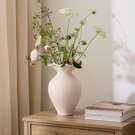 Cette pièce est formée individuellement, décorée à la barbotine, puis brûlée à la main avec une pierre spéciale pour créer un lustre subtil.