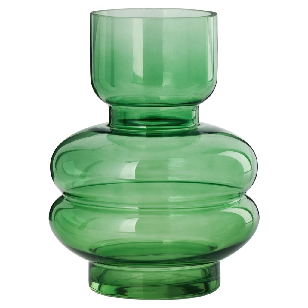 Faites une déclaration audacieuse avec ce vase en verre vert unique en forme d'ampoule multiple, conçu pour rehausser votre décoration intérieure.
