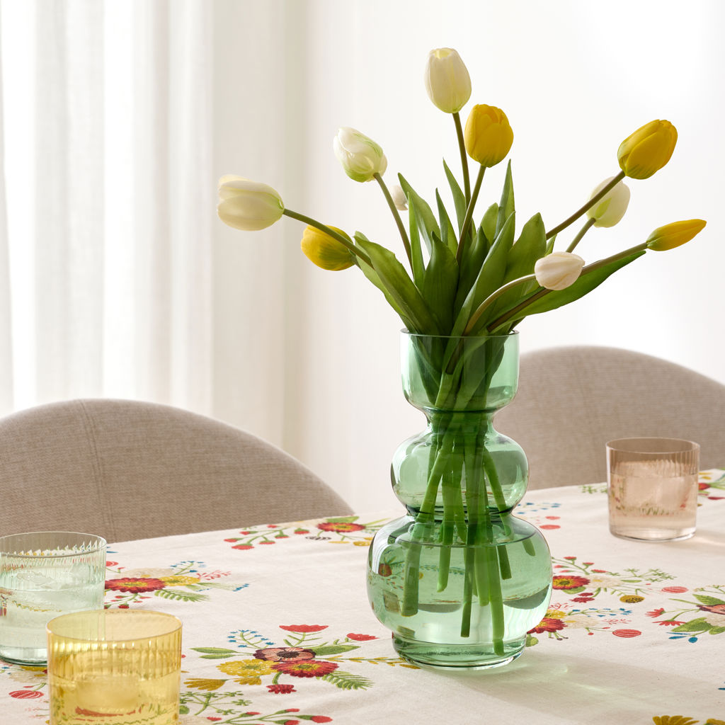 Avec sa couleur verte contemporaine et son design d'inspiration bohème, ce vase ajoute une touche artistique à n'importe quel espace, ce qui en fait un incontournable pour ceux qui recherchent une esthétique design.