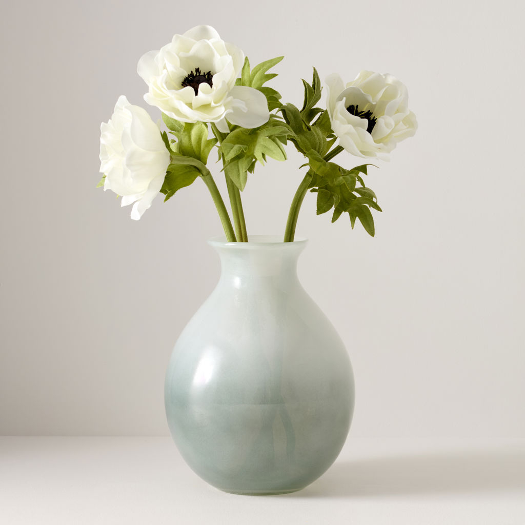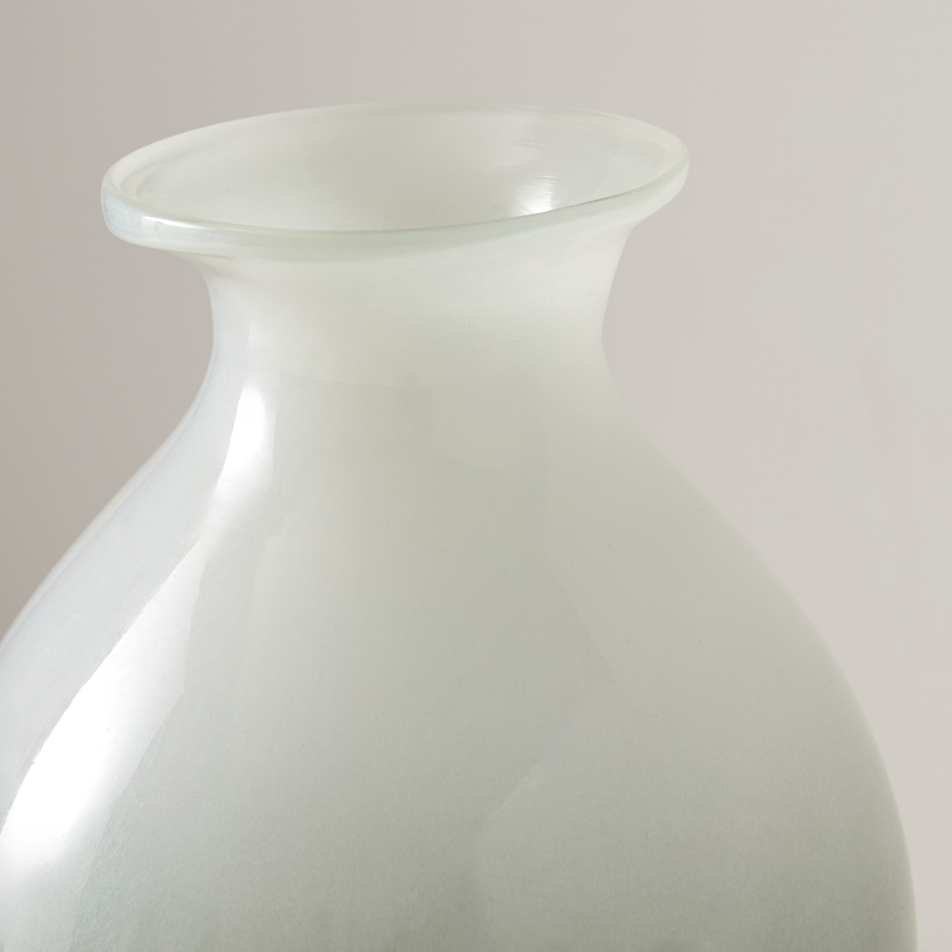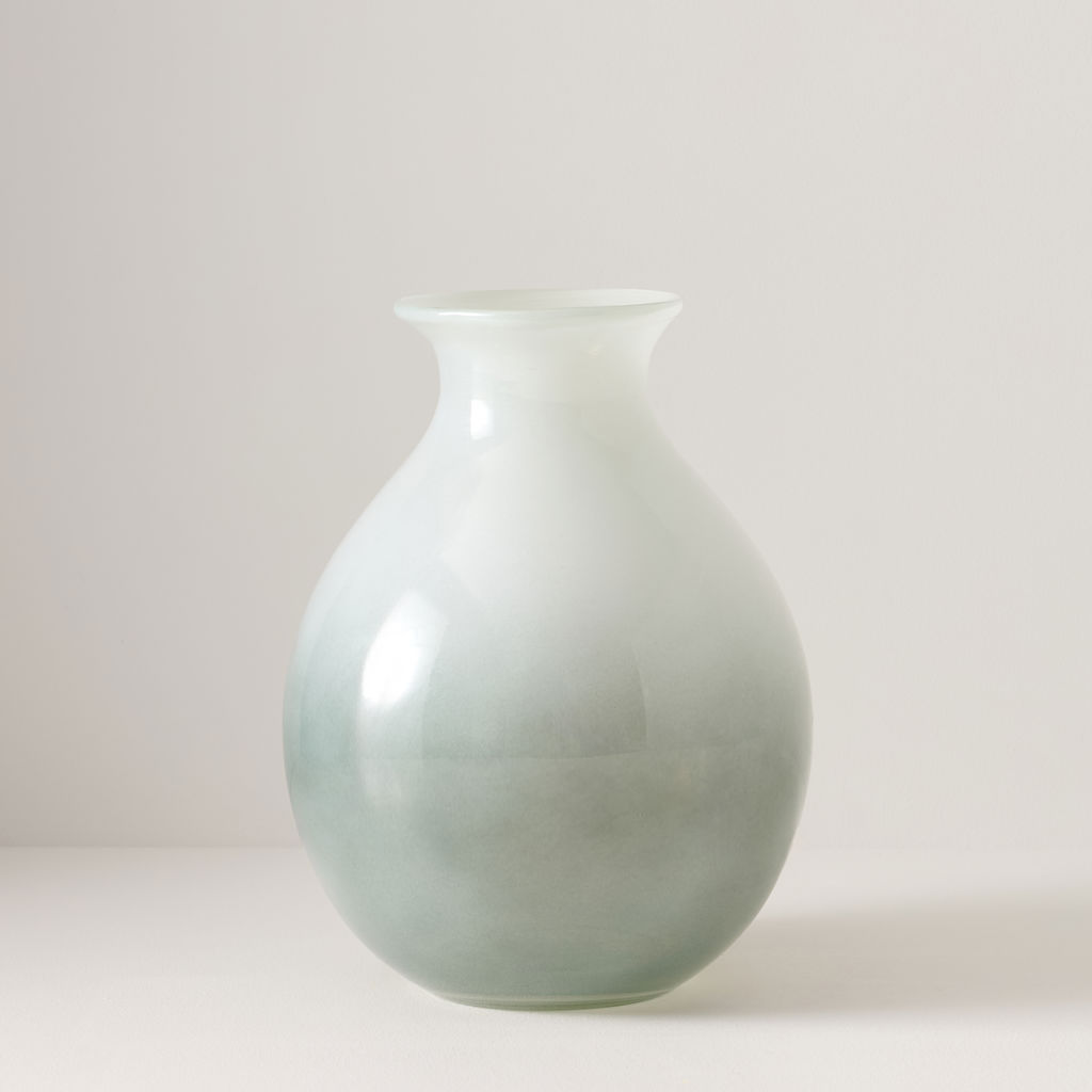 Apportez une touche de sérénité à votre décor avec ce vase en verre soufflé, subtilement dégradé dans des tons apaisants de sauge. Sa forme arrondie et élégante, associée à une finition douce, en fait un choix parfait pour accueillir vos compositions florales ou pour être exposé seul.