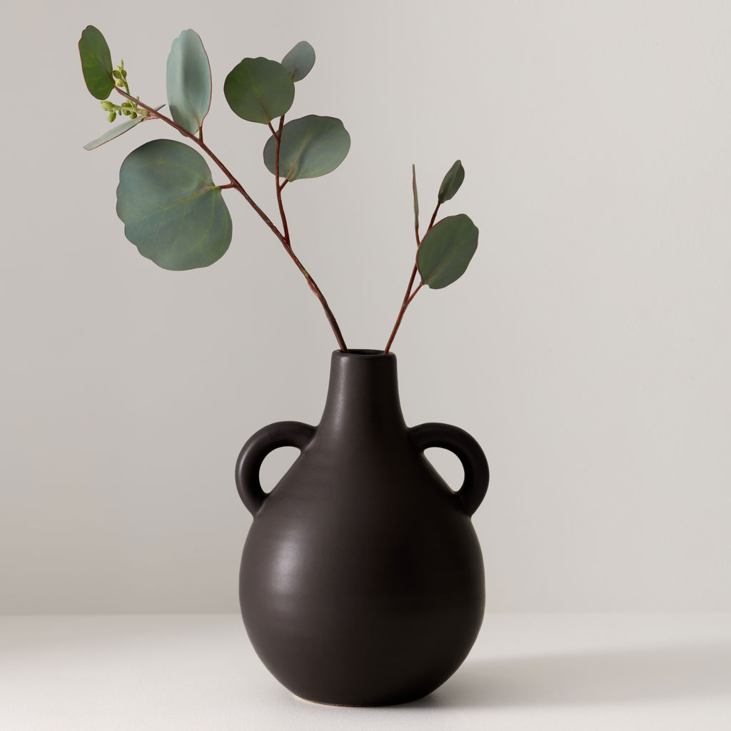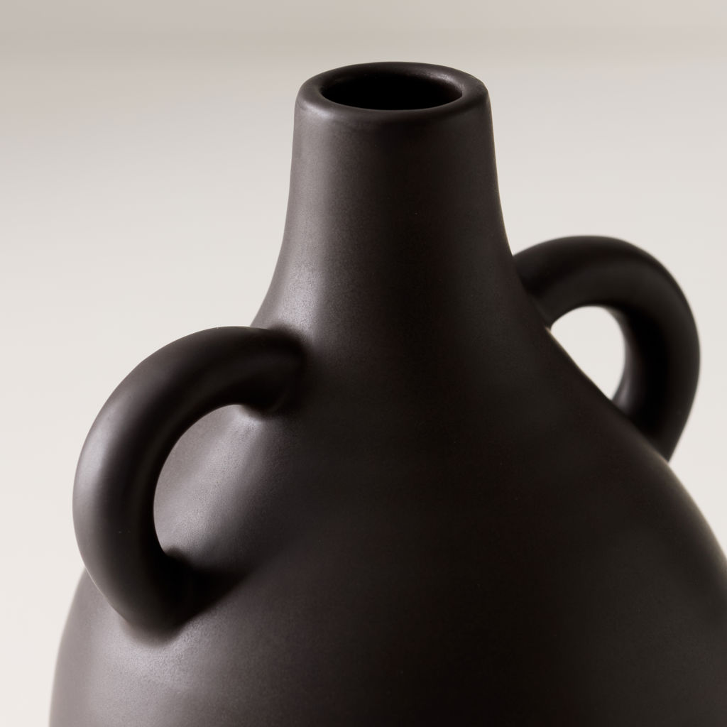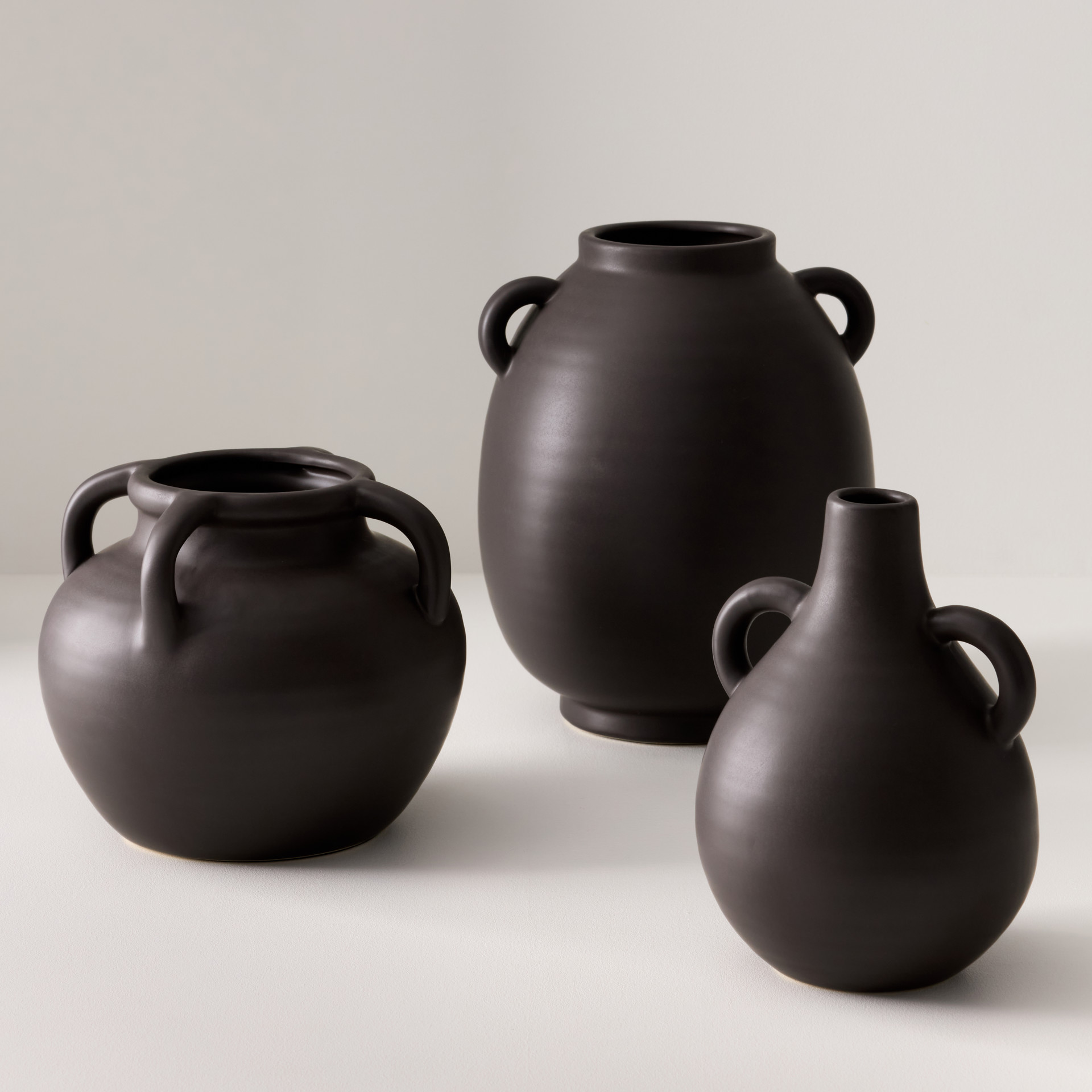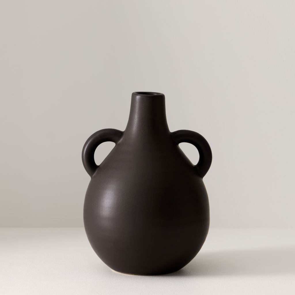 Doté d'une finition mate captivante, ce vase en céramique en forme de larme se distingue par son attrait artisanal distinctif et ses poignées uniques accentuant sa forme. Idéal pour mettre en valeur une seule tige ou un petit bouquet, son design allie parfaitement fonctionnalité et expression artistique.
