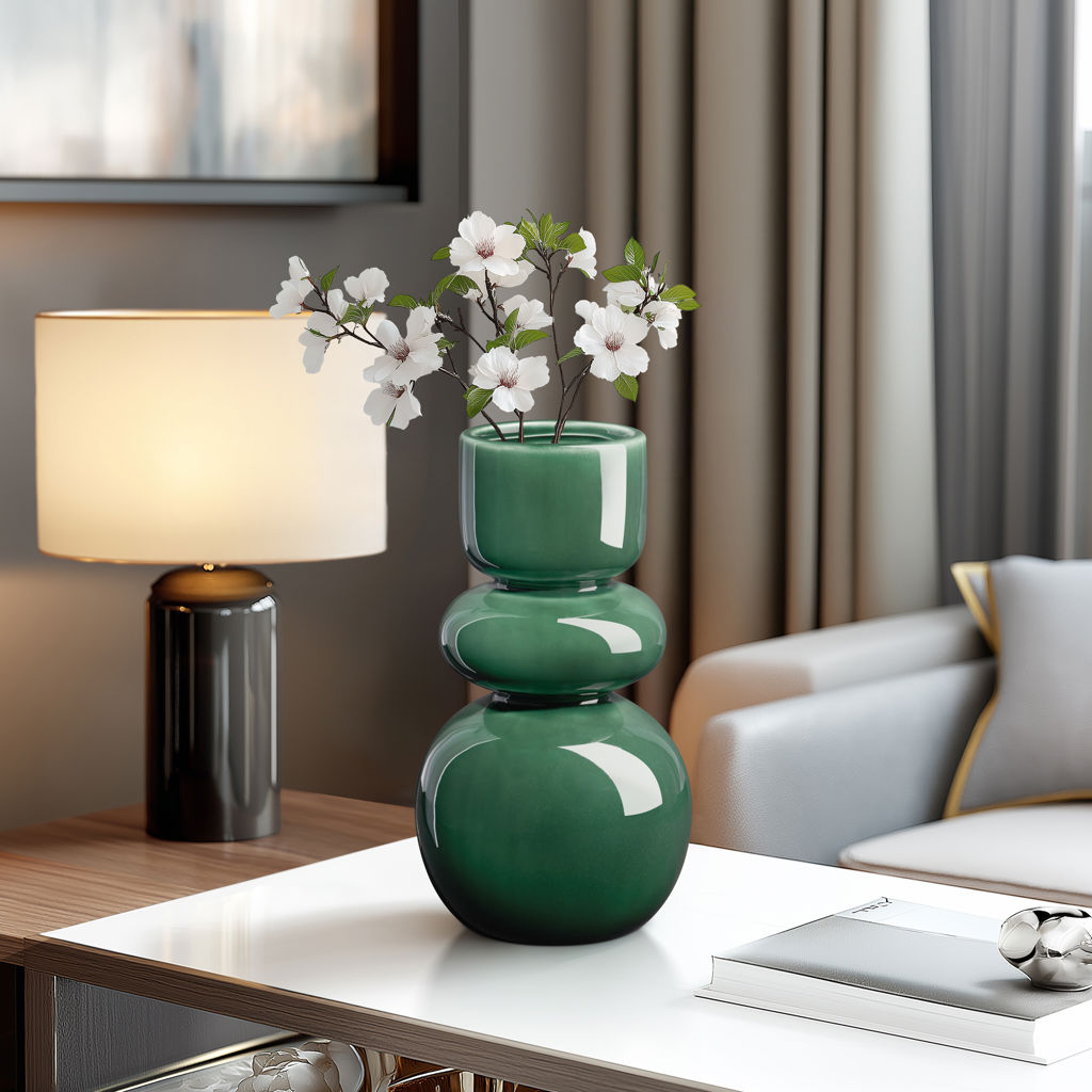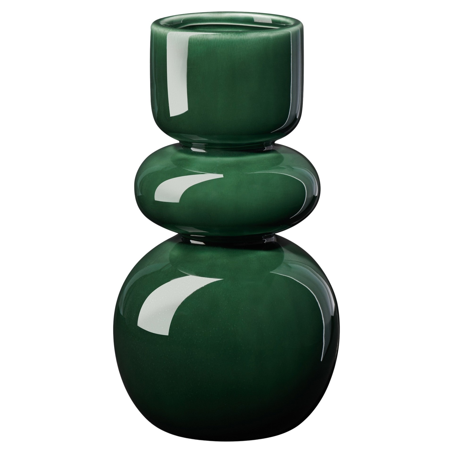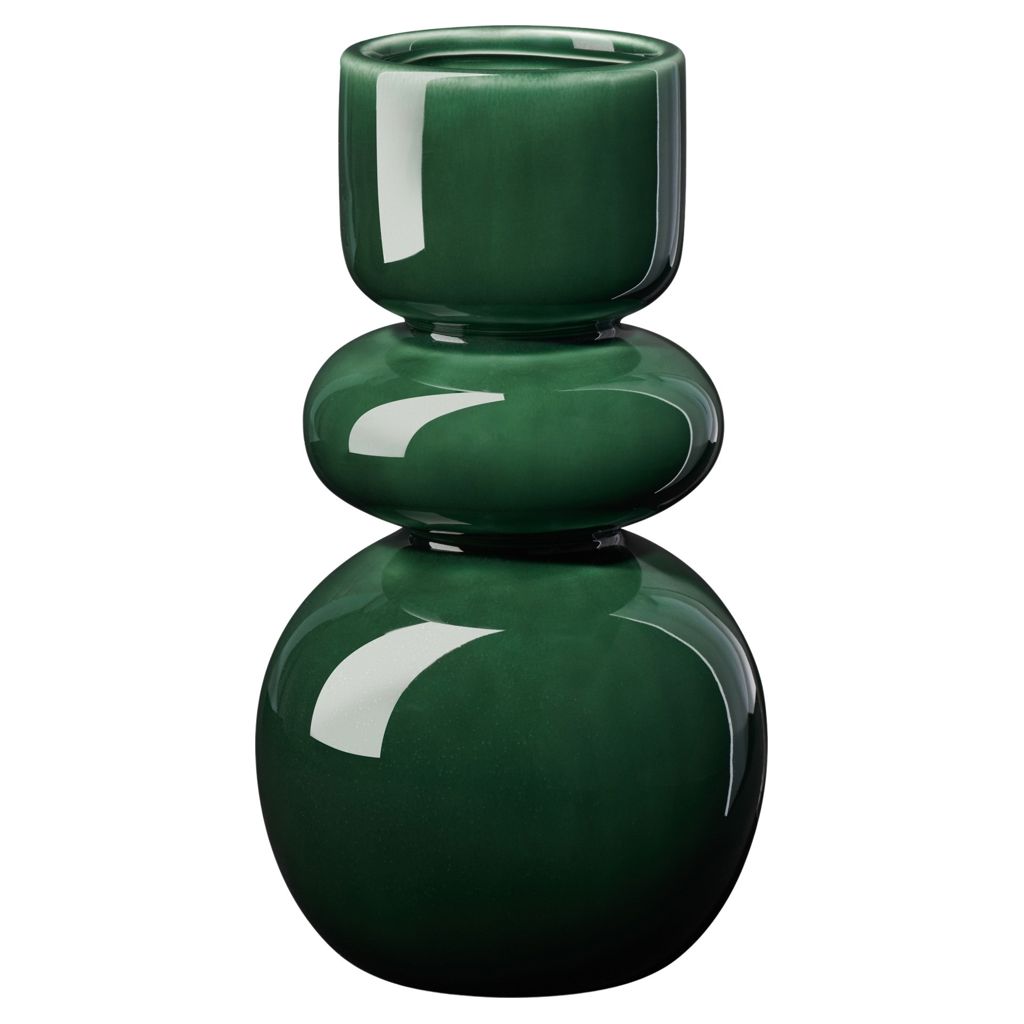 Ce vase cylindrique en céramique vert foncé brillant présente une forme de bulbe élégante, alliant un design moderne à une couleur riche et audacieuse. La finition lisse et réfléchissante ajoute une touche frappante et sophistiquée à n'importe quel espace.
