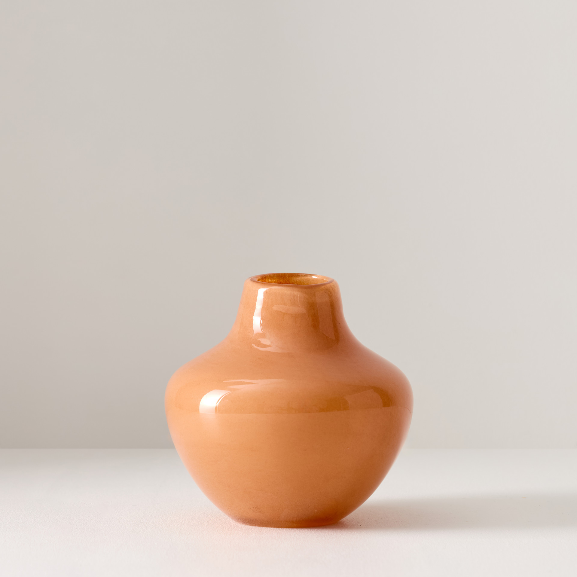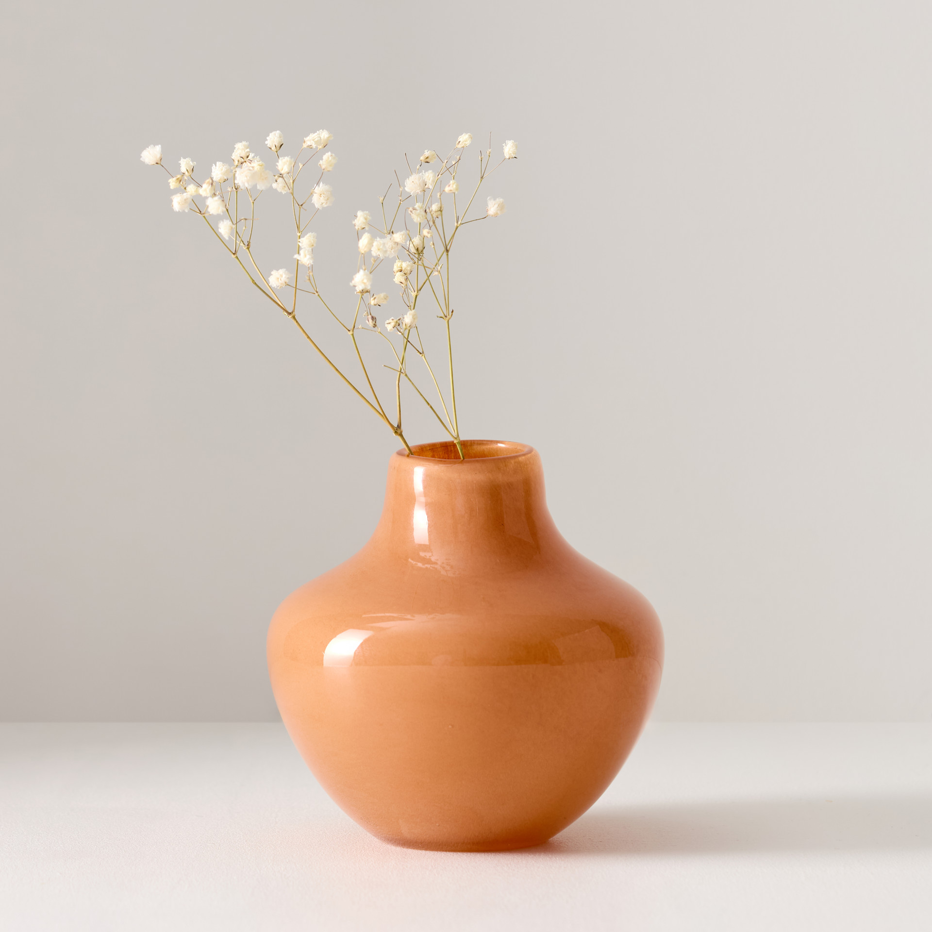 Ce vase en verre opaque fait à la main présente un design rustique et artisanal qui ajoute du caractère et du charme à n'importe quel espace. Sa finition unique lui confère un attrait unique, parfait pour contenir une seule fleur ou un petit arrangement.