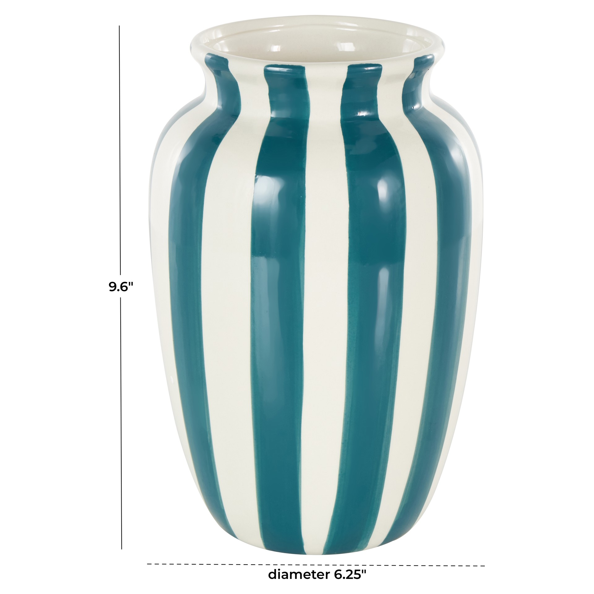 Ce vase en céramique arbore un superbe motif rayé ajoutant une touche de sophistication à n'importe quelle pièce.