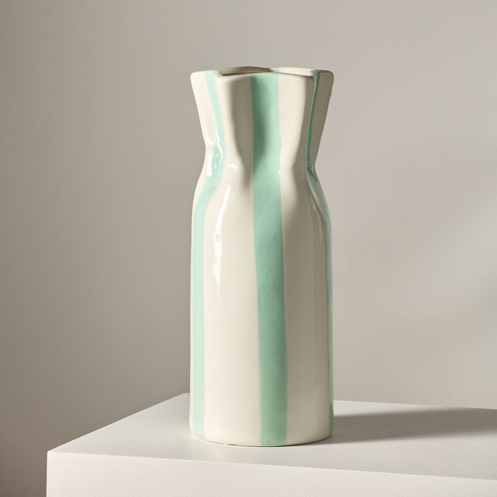 Ce vase en céramique arbore un superbe motif rayé ajoutant une touche de sophistication à n'importe quelle pièce.