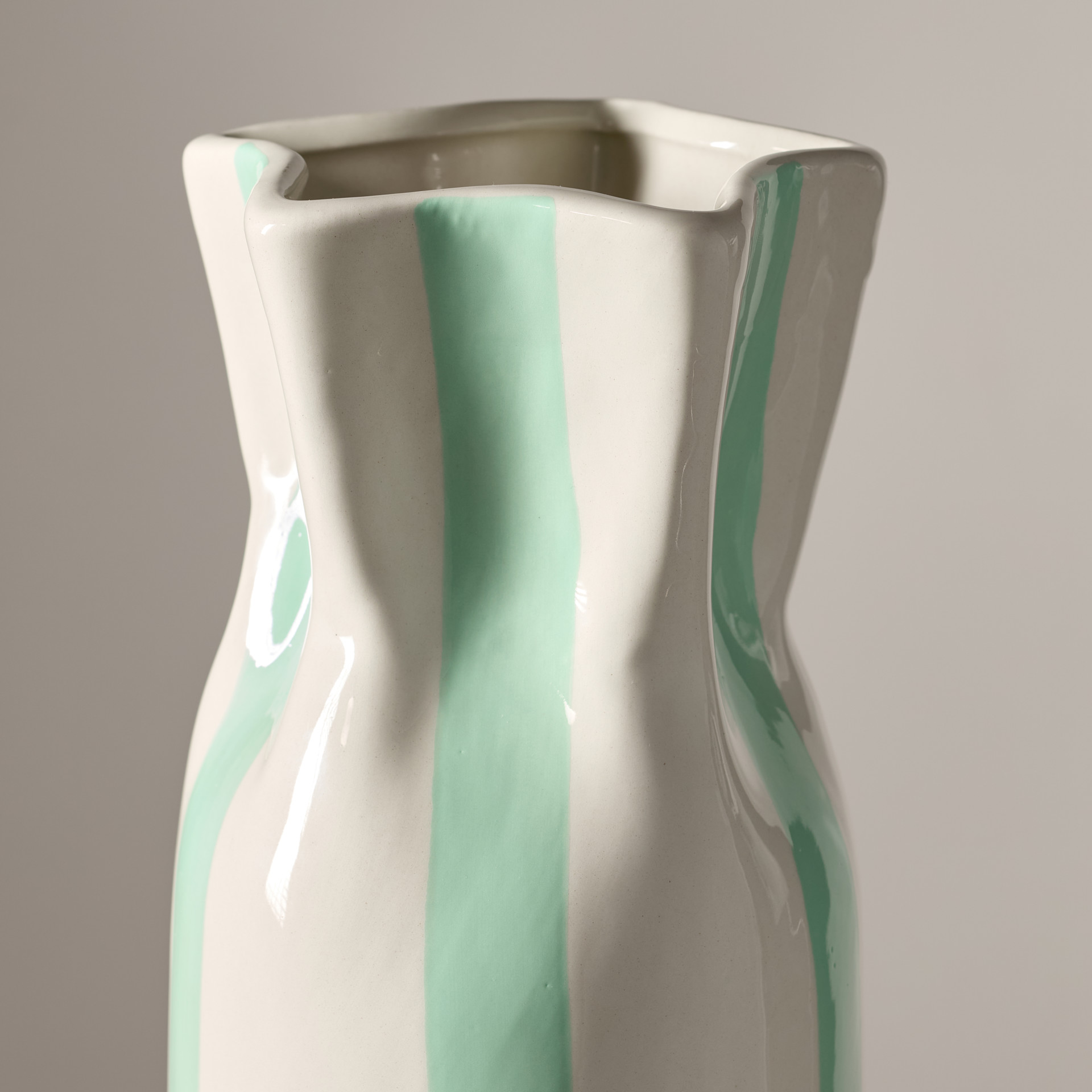 Fabriqué en céramique de haute qualité, ce vase décoratif vert pâle et blanc respire l'élégance et la durabilité.
