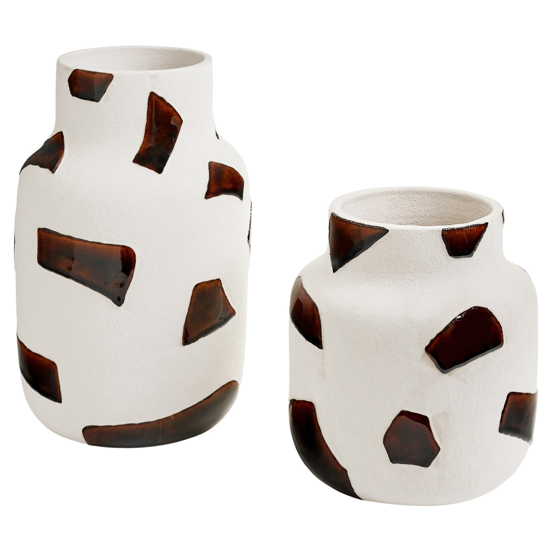Osez avec ce superbe vase en argile avec un terrazzo brun en relief.