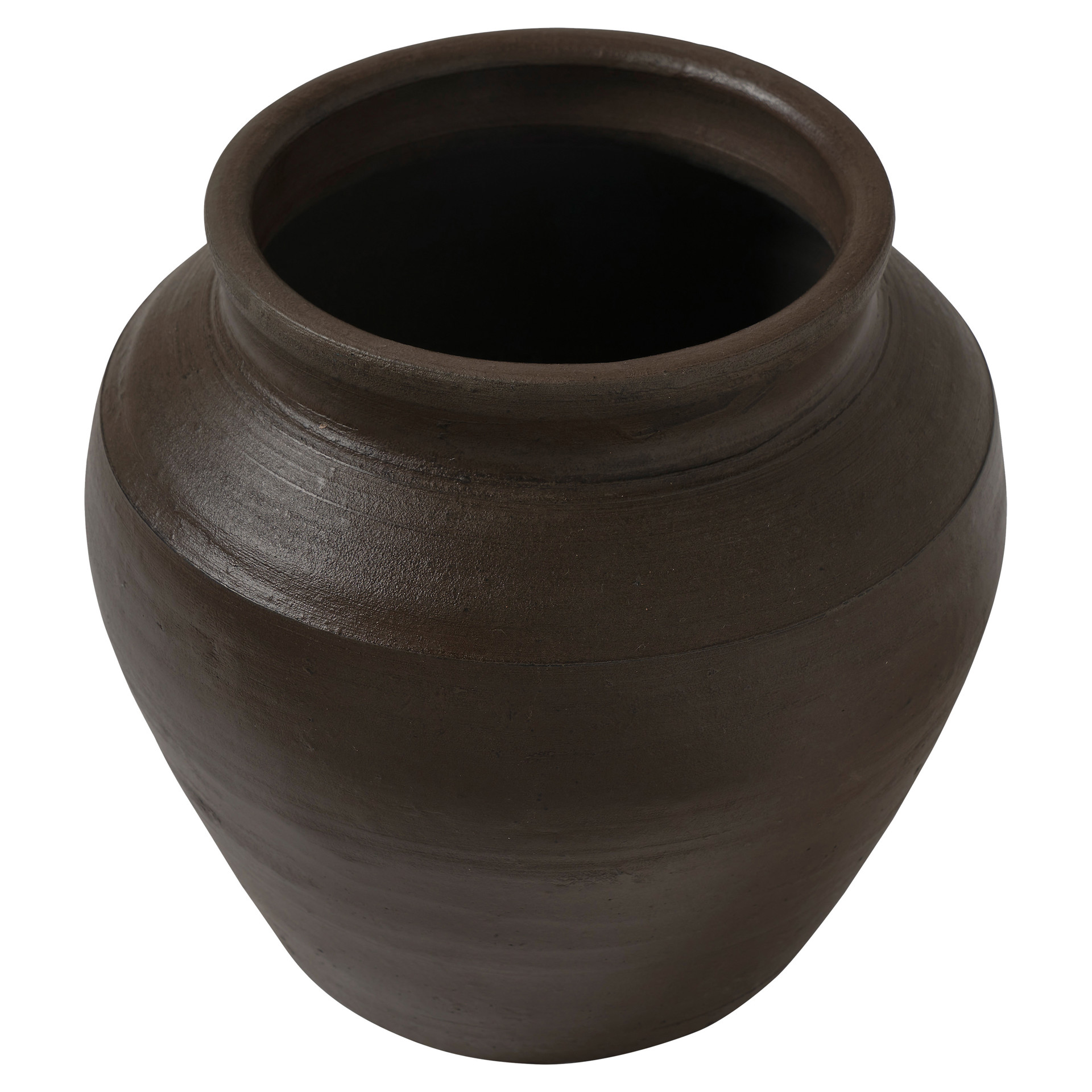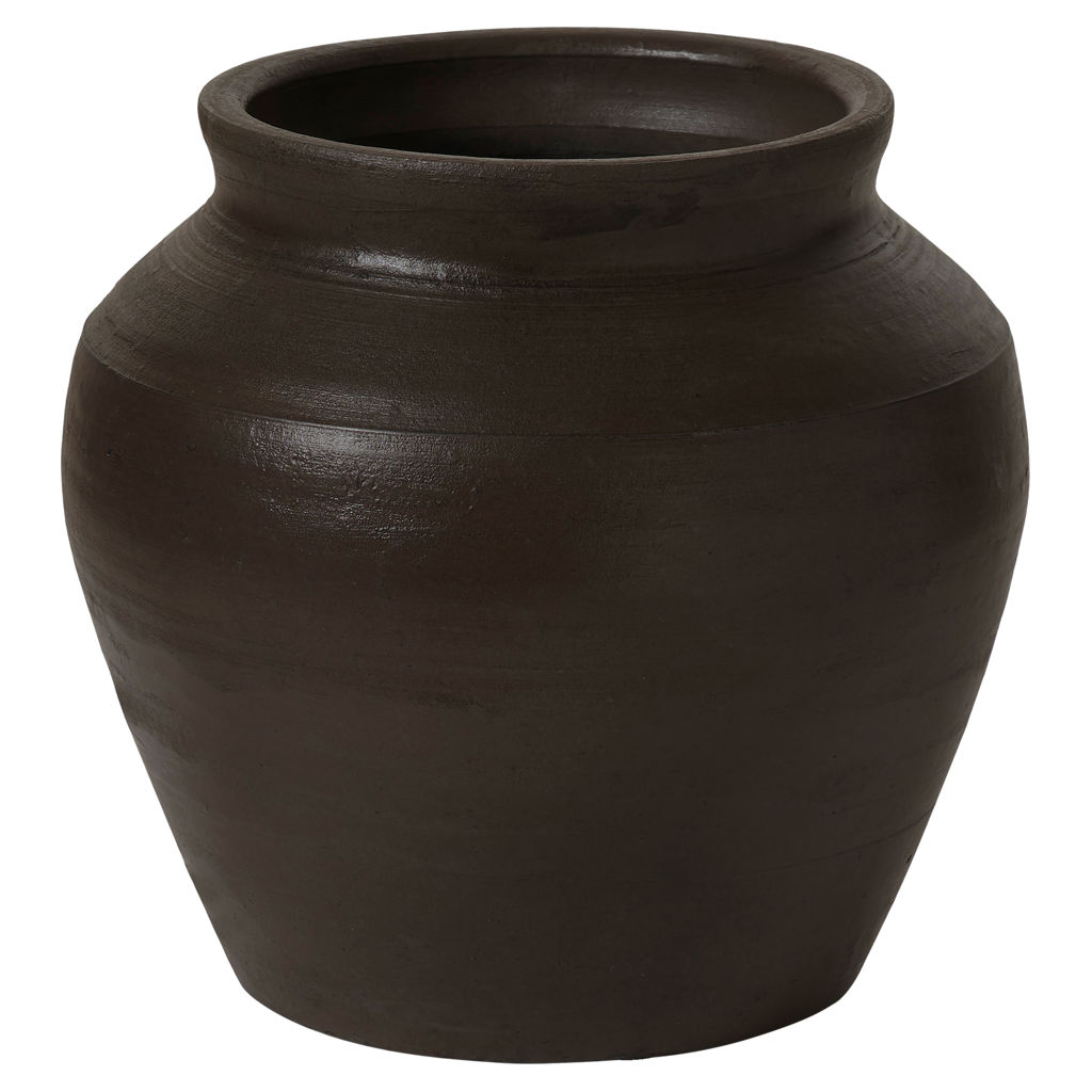 Fabriqué avec une riche finition peinte en brun foncé antique, ce vase décoratif en argile ne manquera pas d'apporter une touche finale artistique à votre projet de design.